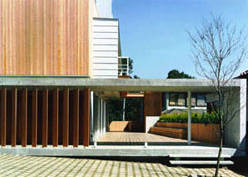南斜面の傾斜地の途中にプライバシーを守りながら開放的な住宅を素直に計画しました。