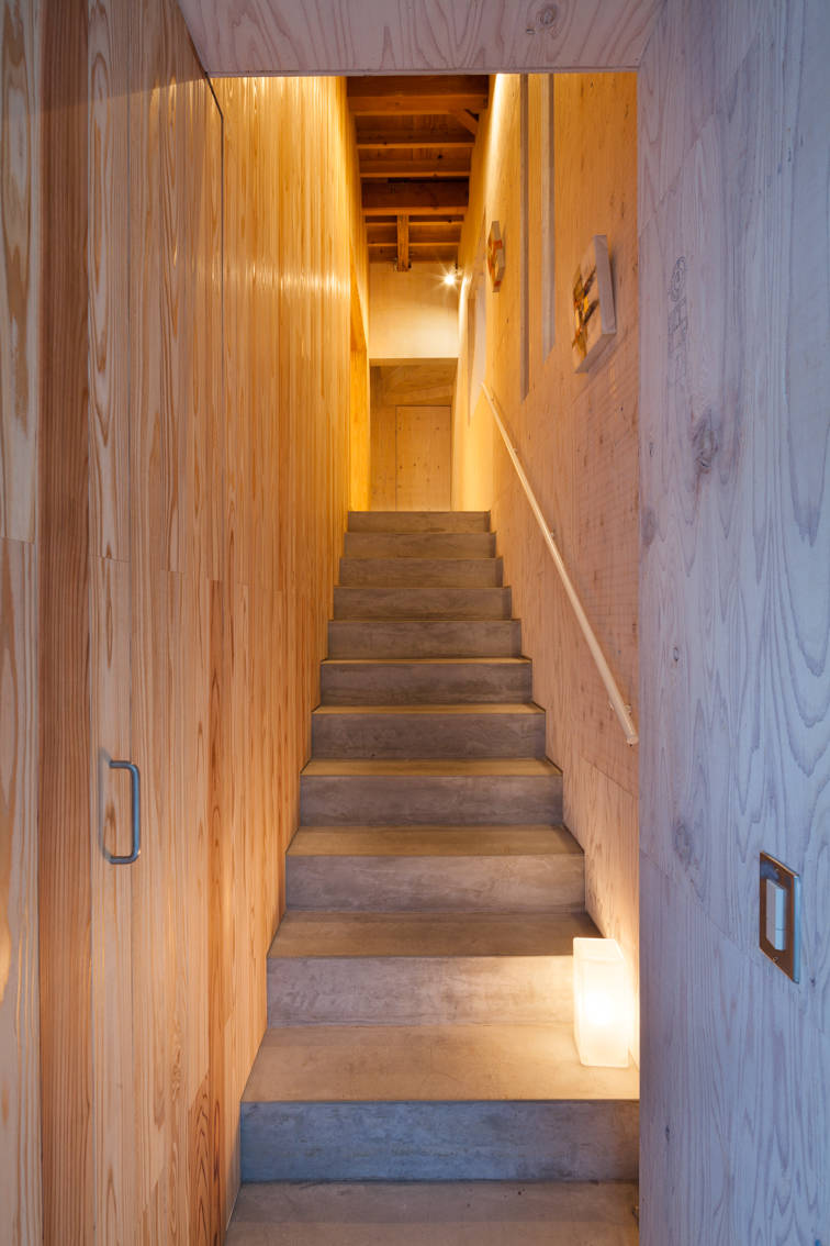 われわれは家族の個人のプライバシーを尊重しながらも家族としてのつながりを意識させるため、それぞれの部屋に個性(さまざまな仕上げ)を持たせ、立体的な入れ子、あるいは家の中に部屋という箱を積み上げていくようなデザインに辿り着きました。