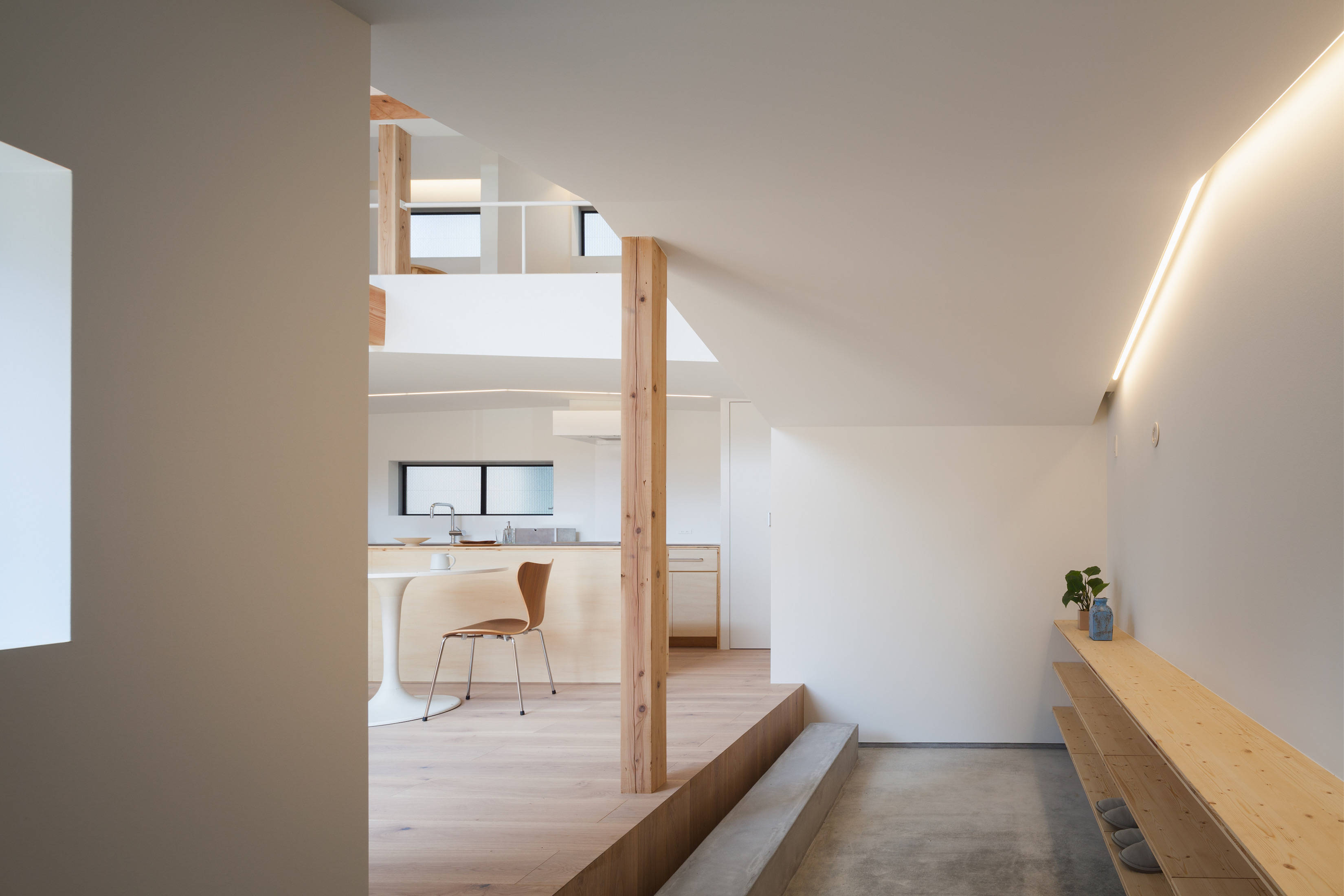 既存の床のレベルと持ち上げた床のずれで隙間が生まれ、1階と2階が繋がります。