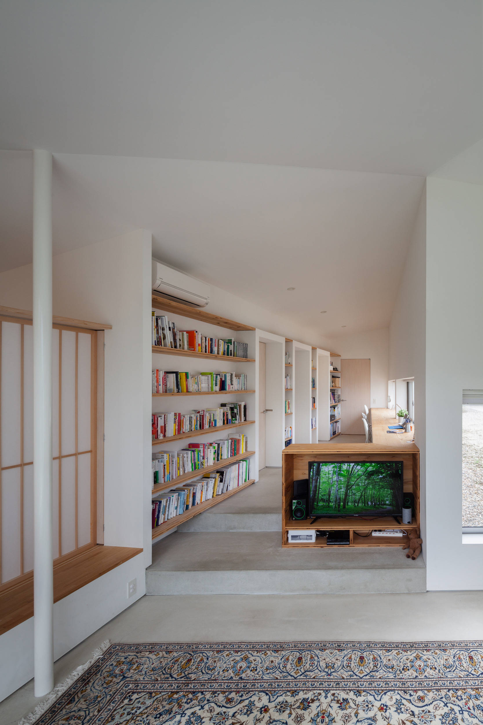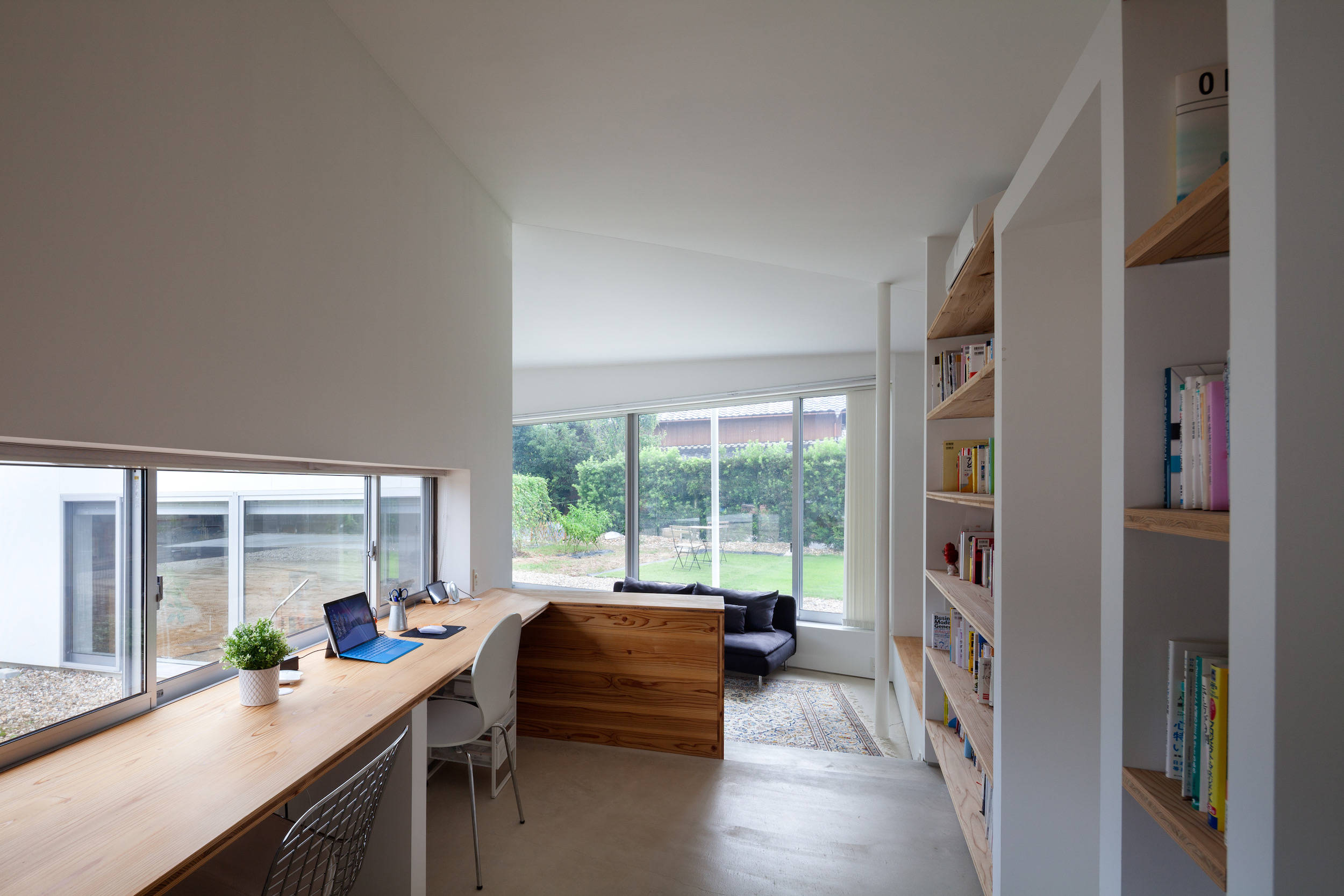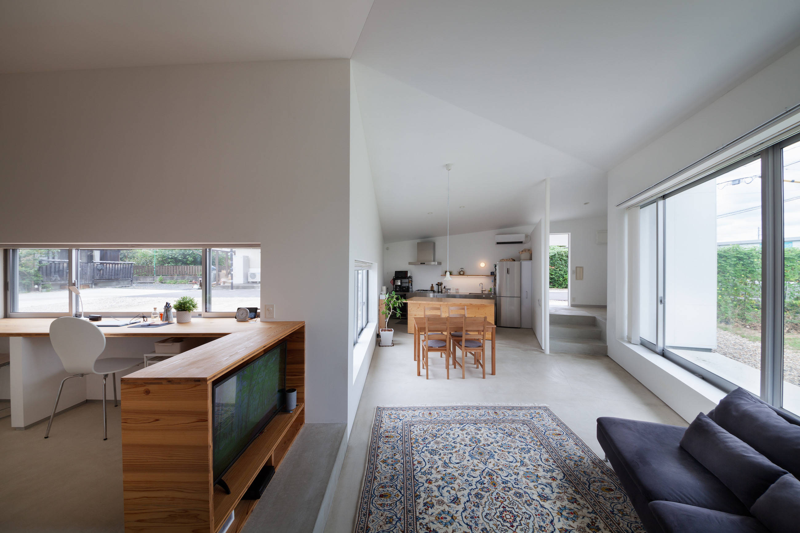 道路からの距離、実家へのアプローチ、実家と繋がる庭と広場、何一つ絶対的な数字はなく、ただ過不足のない適当な距離からこの平屋は生まれました。