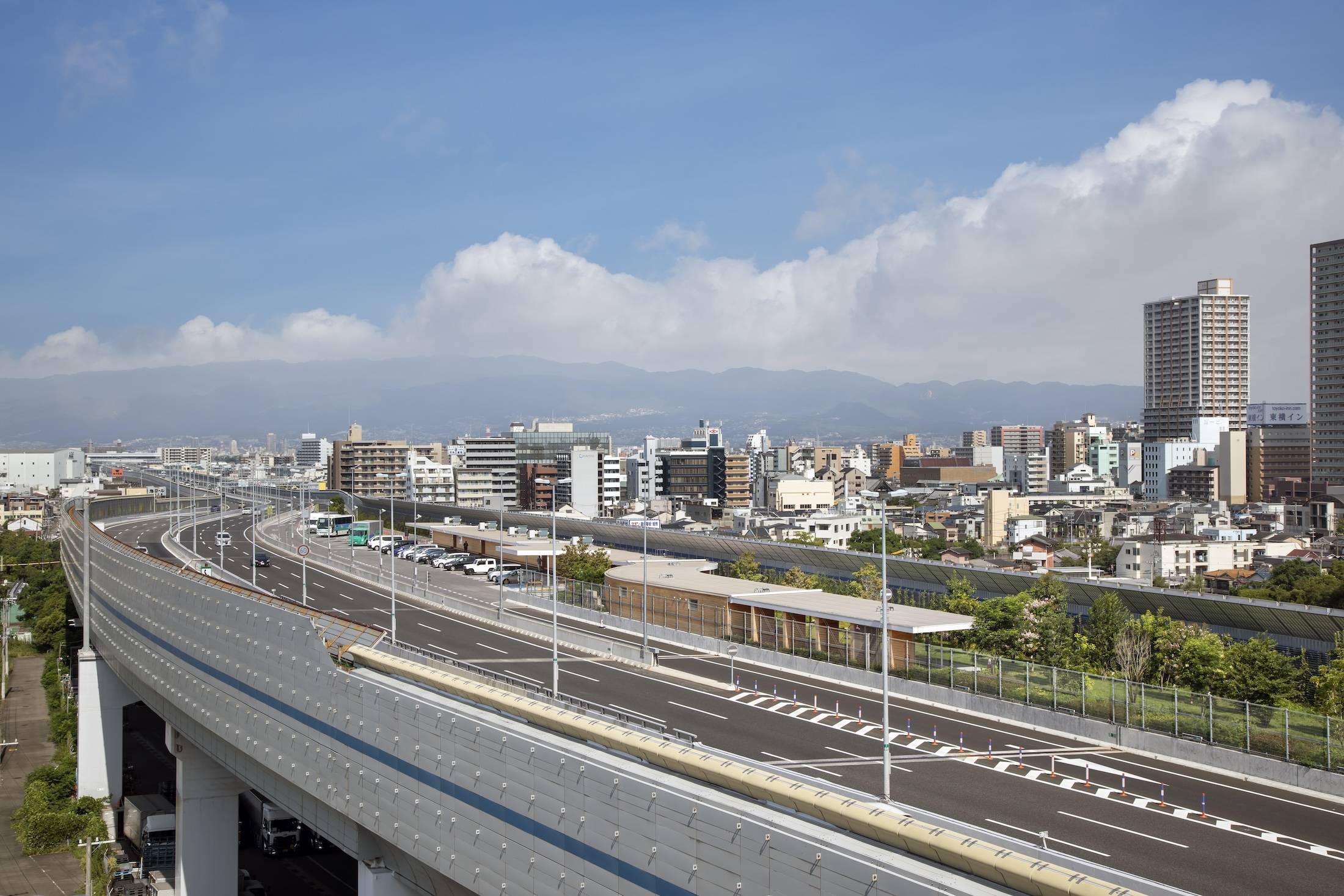 尼崎パーキングは、陸橋型高速道路・阪神高速3号神戸線の上り車線側にある。 高速道路上にあるパーキングエリアはどんな風にドライバーや利用者を受け入れるのが望ましいのだろうか。また、利用者がパーキングエリアに求めるものは何だろうか。