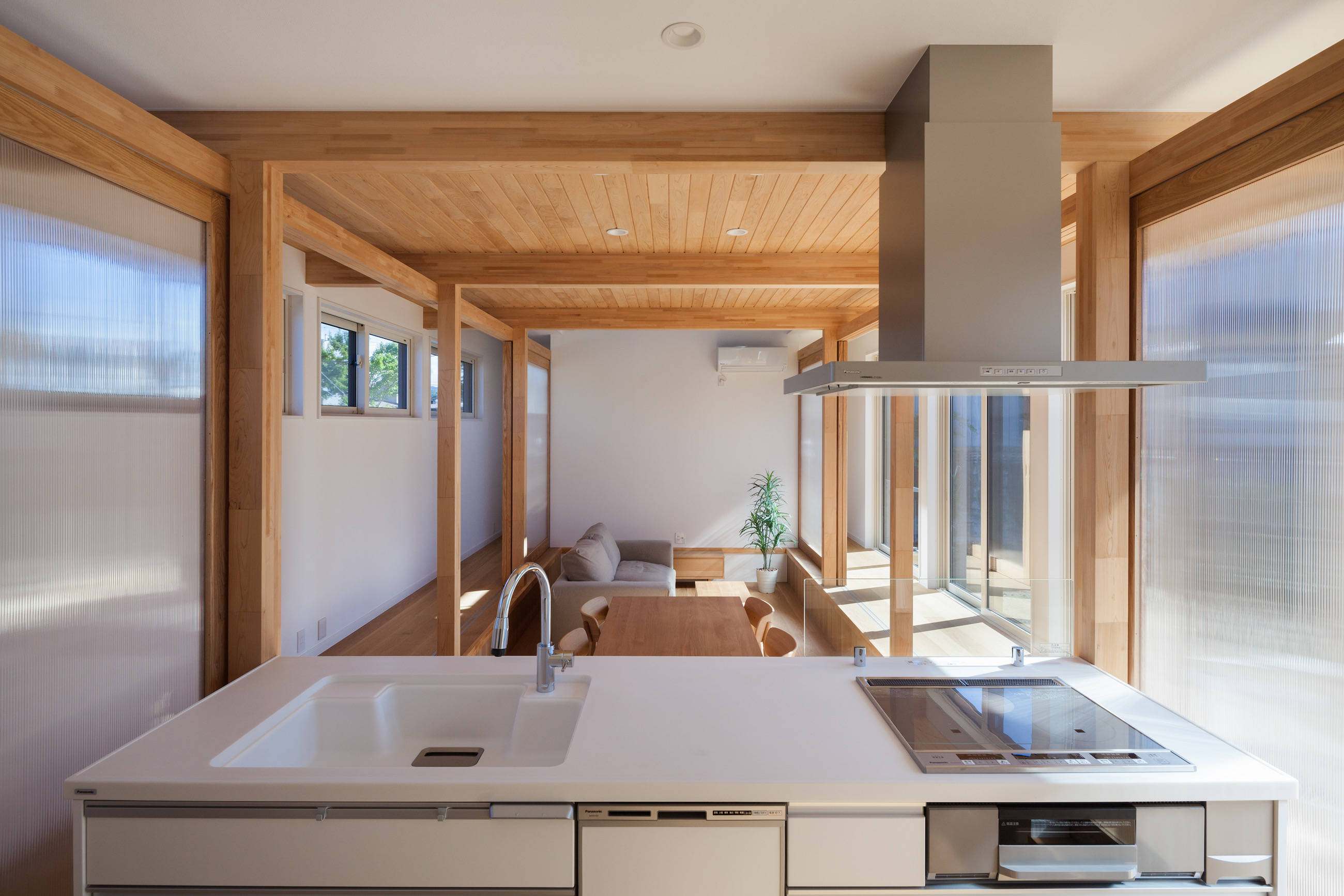 東西に長いプランは、太陽の光をいっぱいに受け風抜けの良い開放的な住宅を実現します。