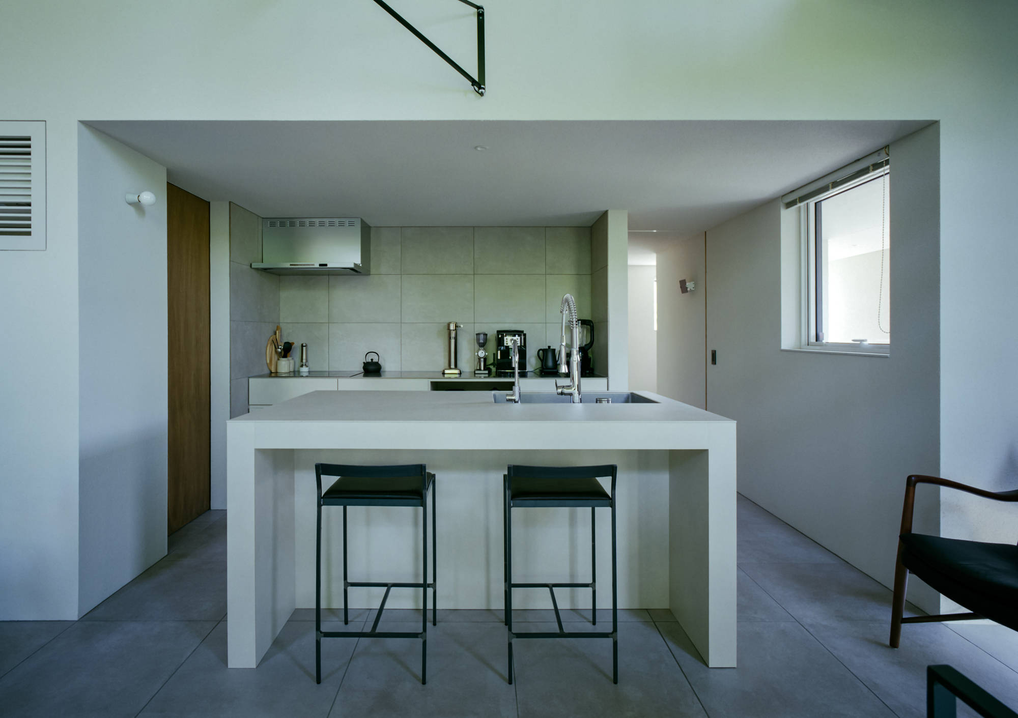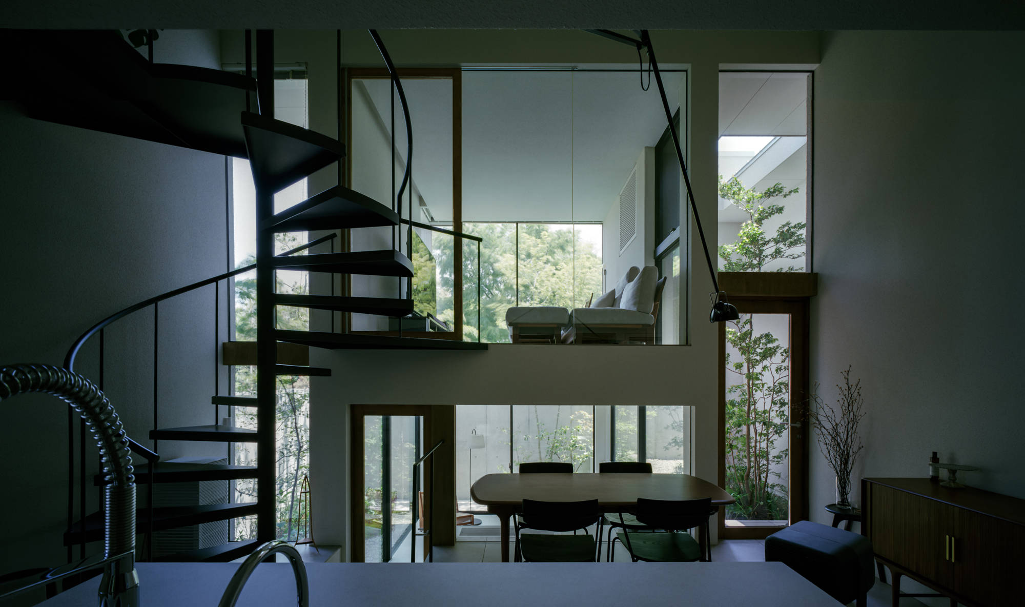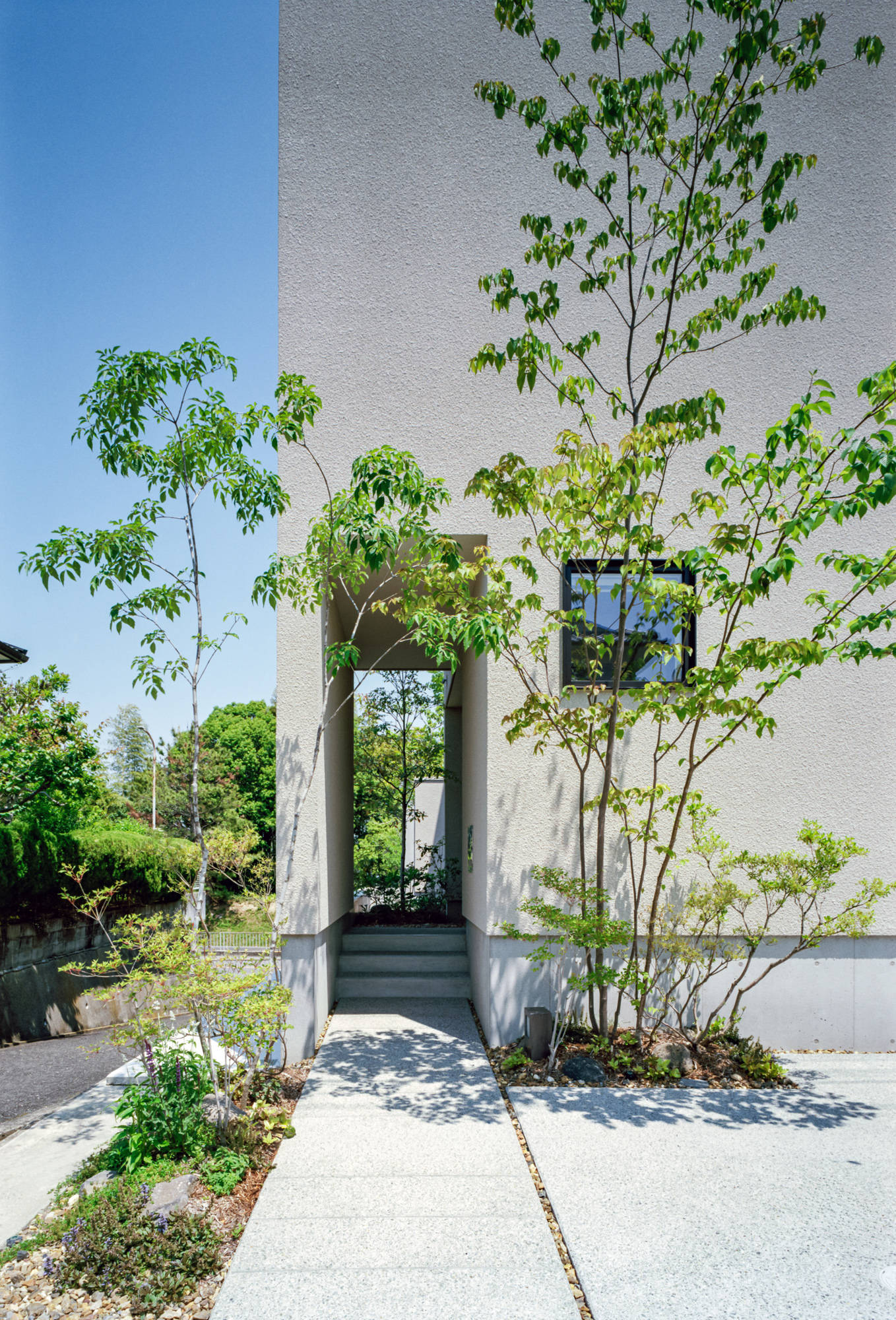 玄関側の手前のボリュームはプライベートゾーンとして閉じた空間とし、