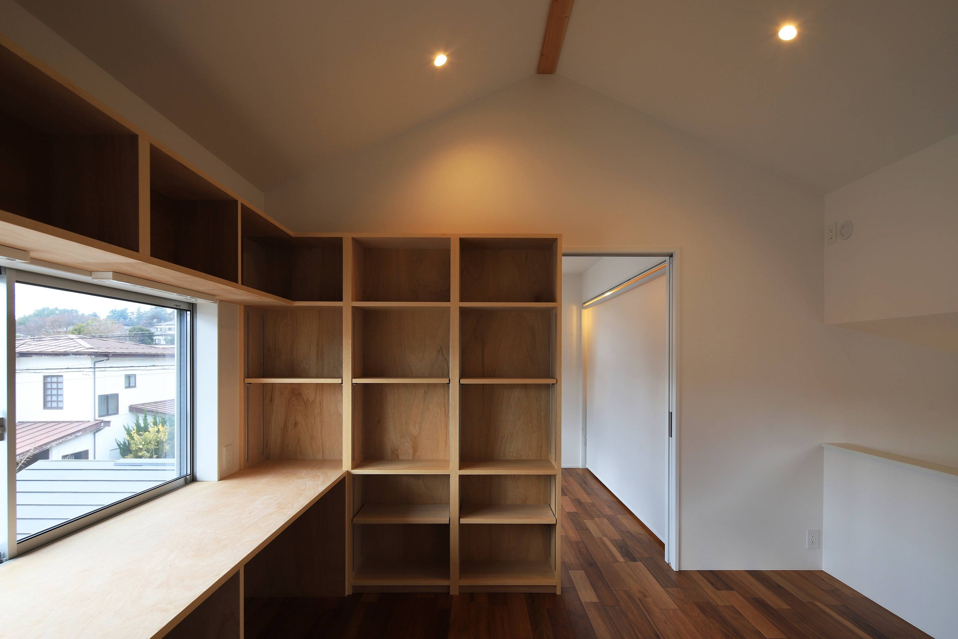 家で仕事をすることからも家事動線にも配慮し、家族団欒の場を居間以外にも2階の図書スペースとして設けている。今後の家族の成長と共に、住まいと庭の成長を見守っていきたい。