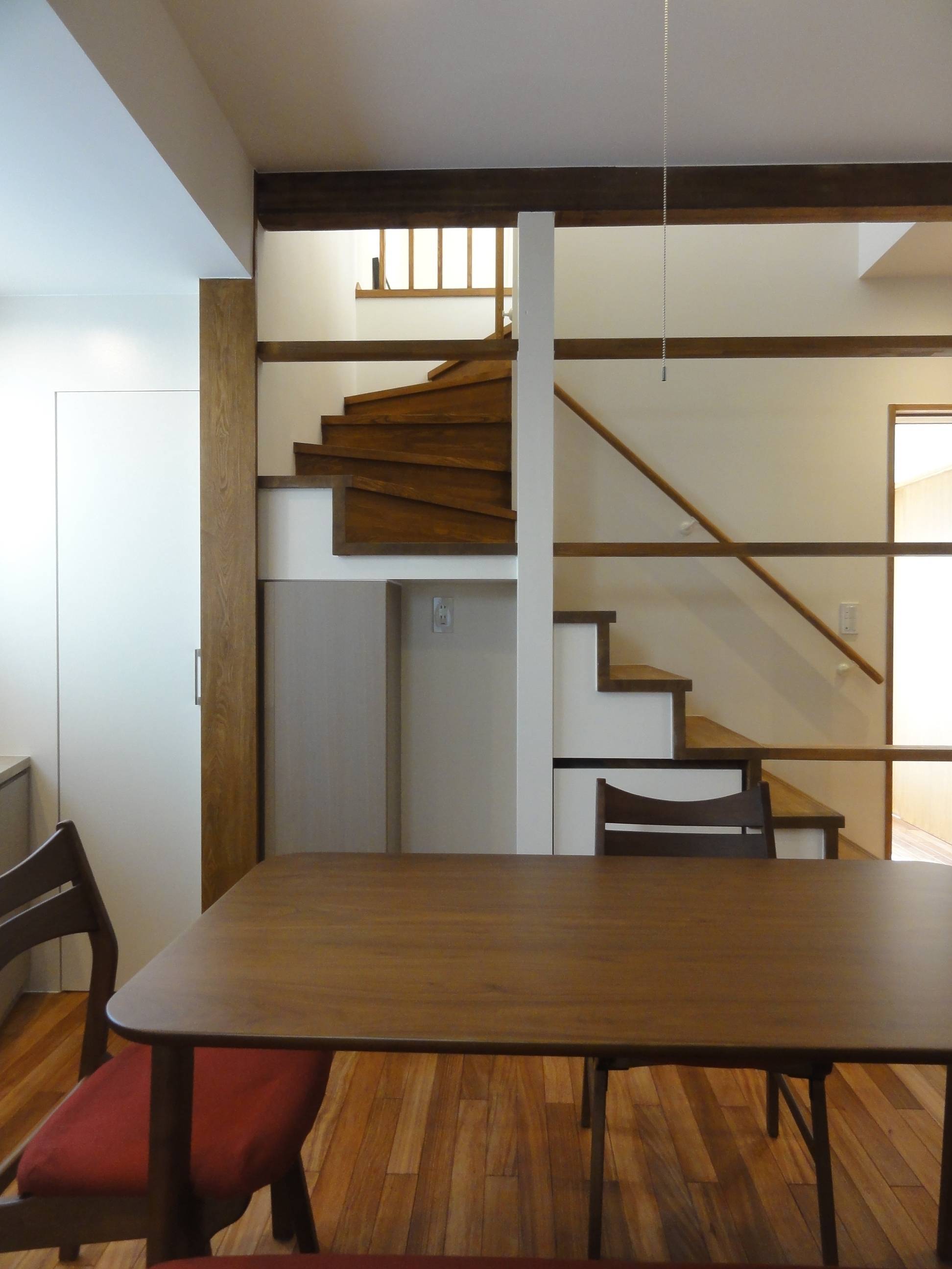 築45年の木造住宅のリノベーション、愛猫家でもあるお母様と娘のための住まいです。階段の位置、水廻りの位置を大きく変更して明るく快適な室内を目指しました。小ぢんまりとした住まいです、階段下などデッドスペース無く、有効に活用できるように工夫を凝らしました。1階はテーブルと椅子の生活、2階のサブリビングではソファのあるゆったりとした時間が流れるように考えています。大人二人暮らしの生活にとって重要な距離感と気配の繋がりを丁寧に計画しました。構造補強、断熱補強等、住まいの基本性能と耐久年数の向上に努めました。
