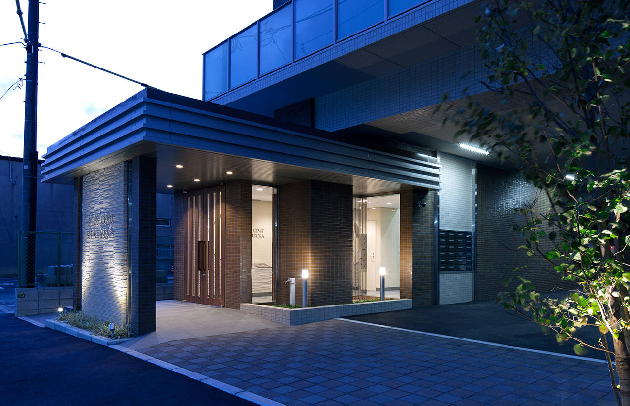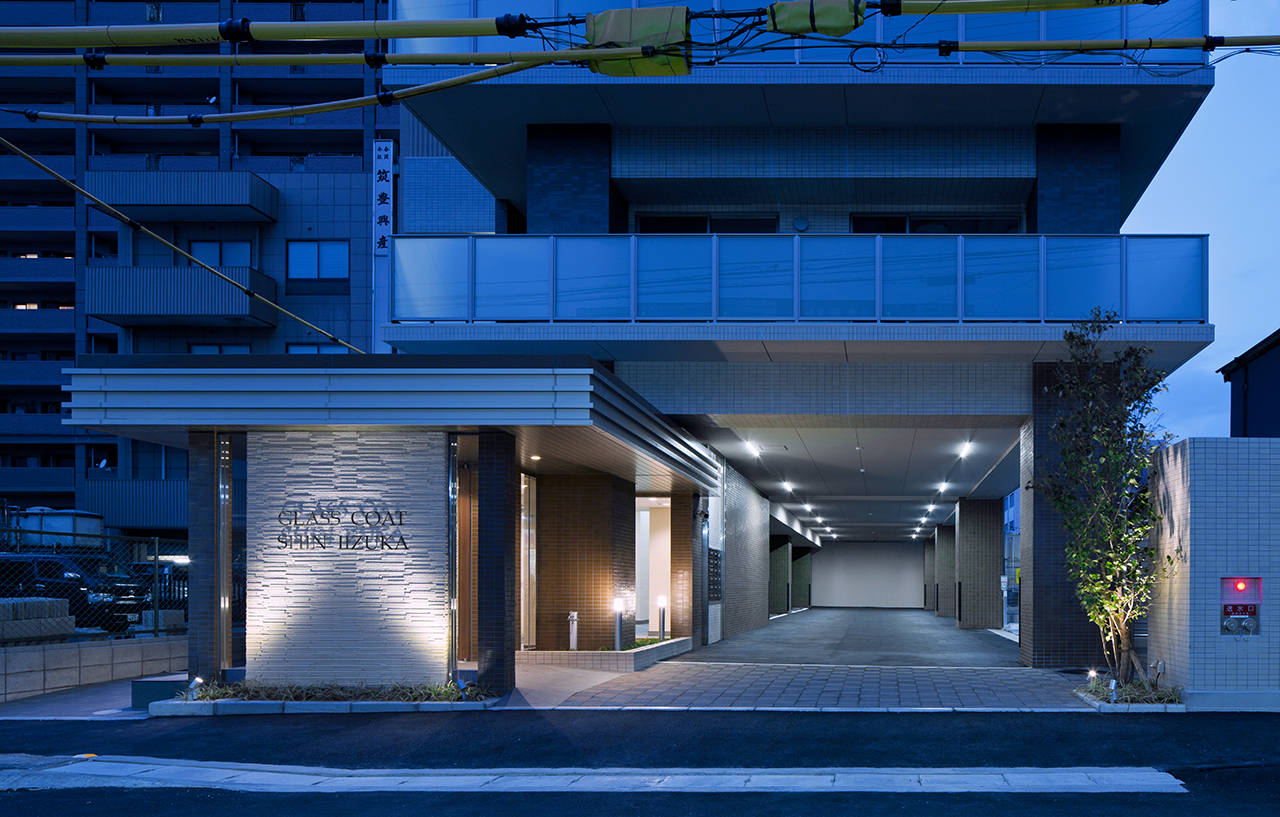 新飯塚の古い商店街の一角に建てられたこの賃貸マンションは都会的になり過ぎず、それでいて少し上のステイタスを感じさせるデザインとなるように気を配りながら設計しました。
