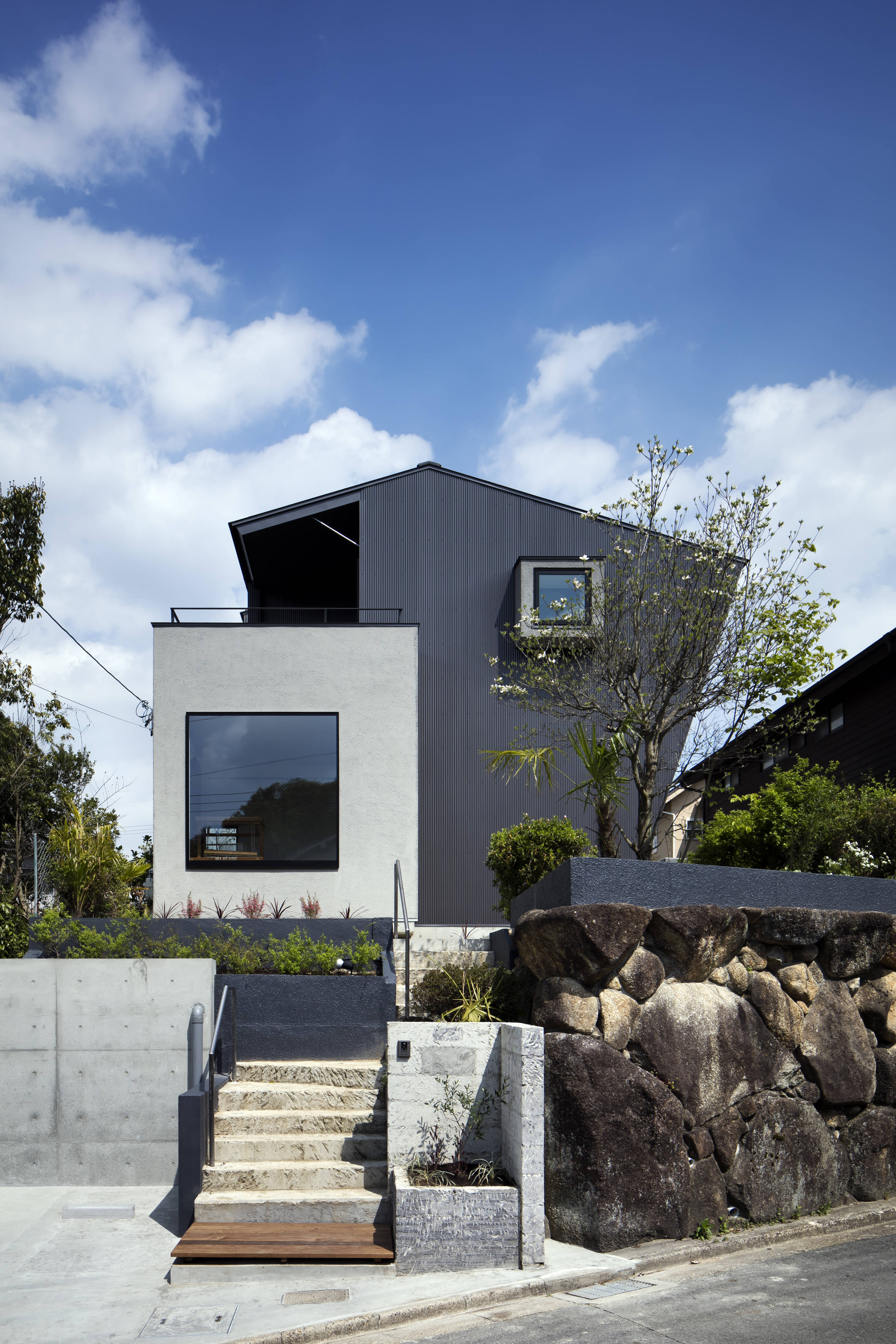 敷地は富雄泉ケ丘の閑静な住宅地に位置します。風致地区の規定に法り、均一な屋根形状、色合いの住宅が建ち並んでいます。 住宅は住まう人の家族、趣味、そして人生が表現されるものです。多様な世帯、多様な住まいが混在してこそ街に活気が生まれます。 統制された街並みの中に、住まい手の個性を規制の範囲内で表現し、街の活性化につなげました。