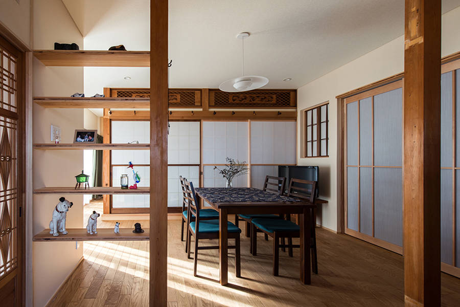 築50年近くなる古家の全面リフォームです。 長年東京住まいのご夫婦、定年を迎えたことをきっかけに、鈴鹿にある実家を全面リノベーションして新しい生活を送ることとなりました。 古い建具や障子古材などを生かしつつ、趣味を中心とした居場所のある心地よい光と風が流れる住まいです。