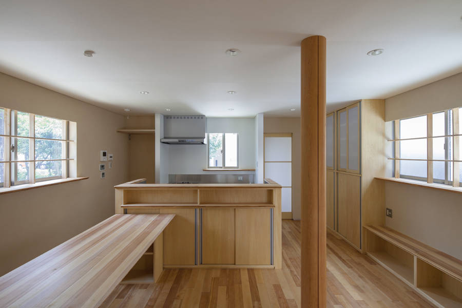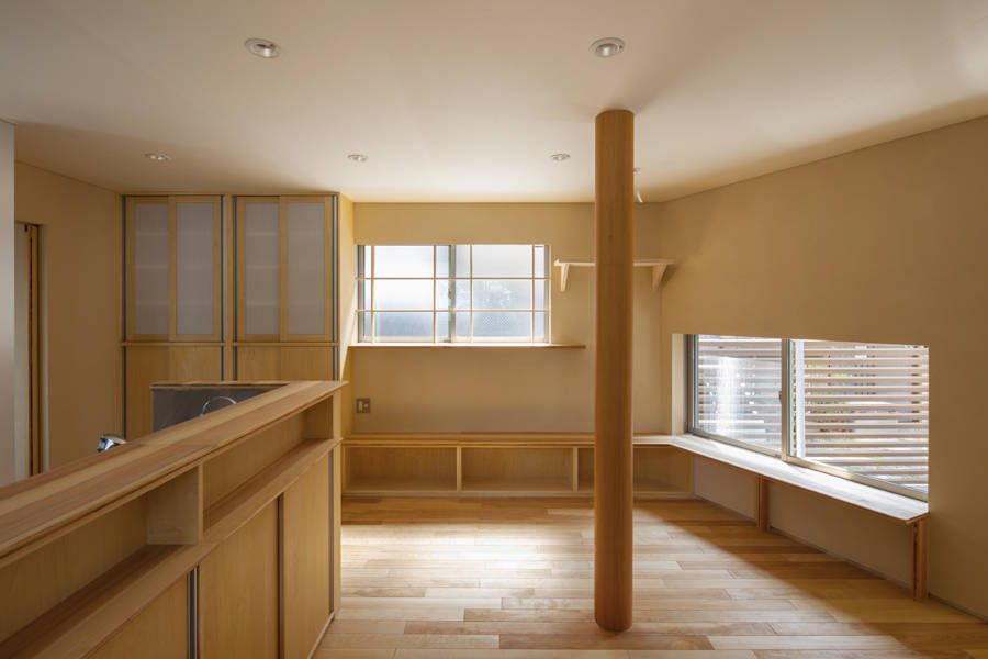 都心に建つ、母親+夫婦+子供2人のための木造2階建て住まいです。