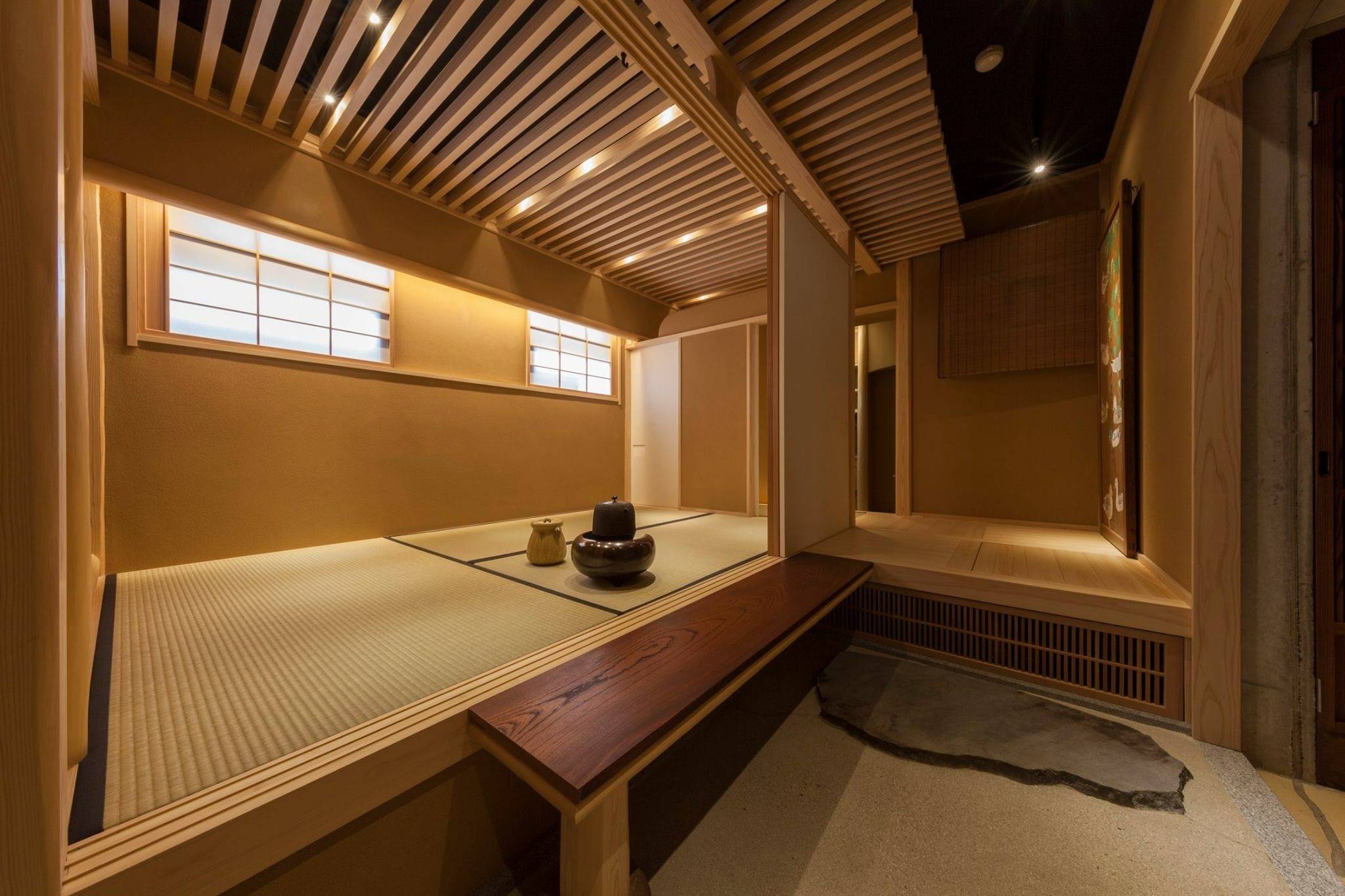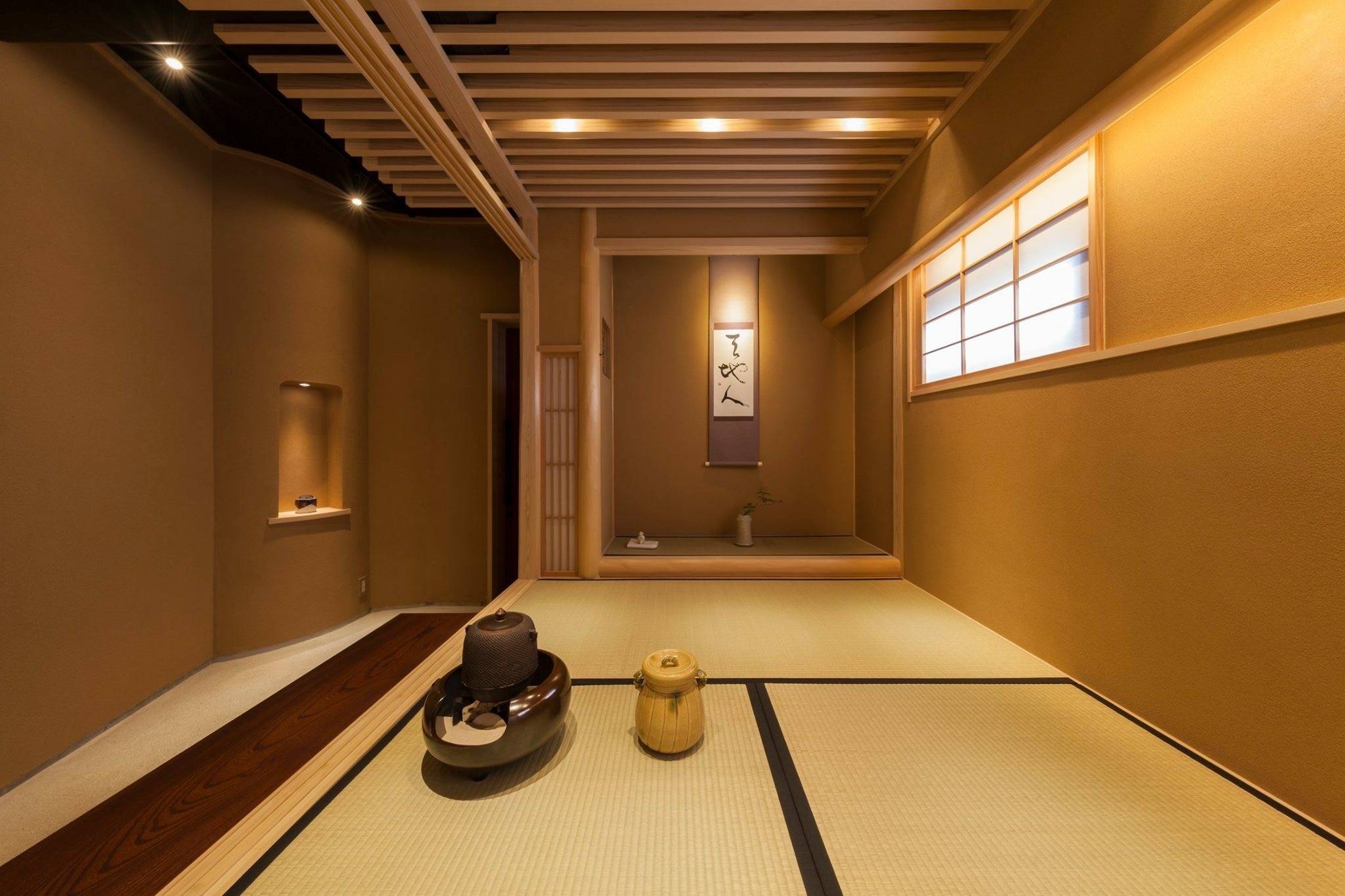 マンションの1階エントランス脇倉庫を茶室に改装。