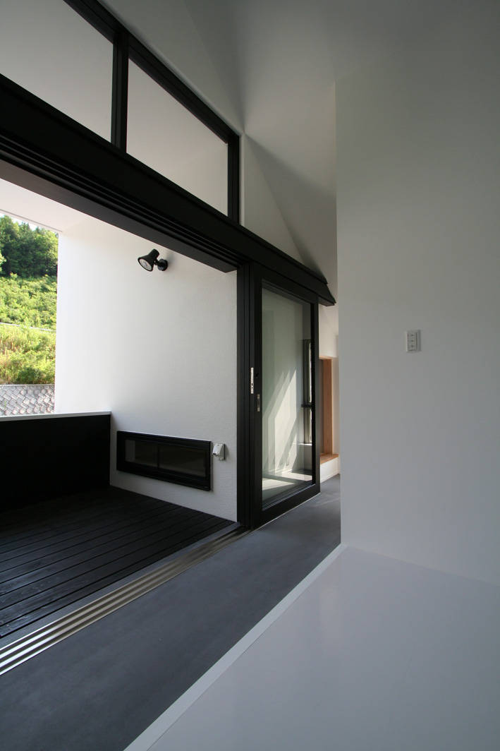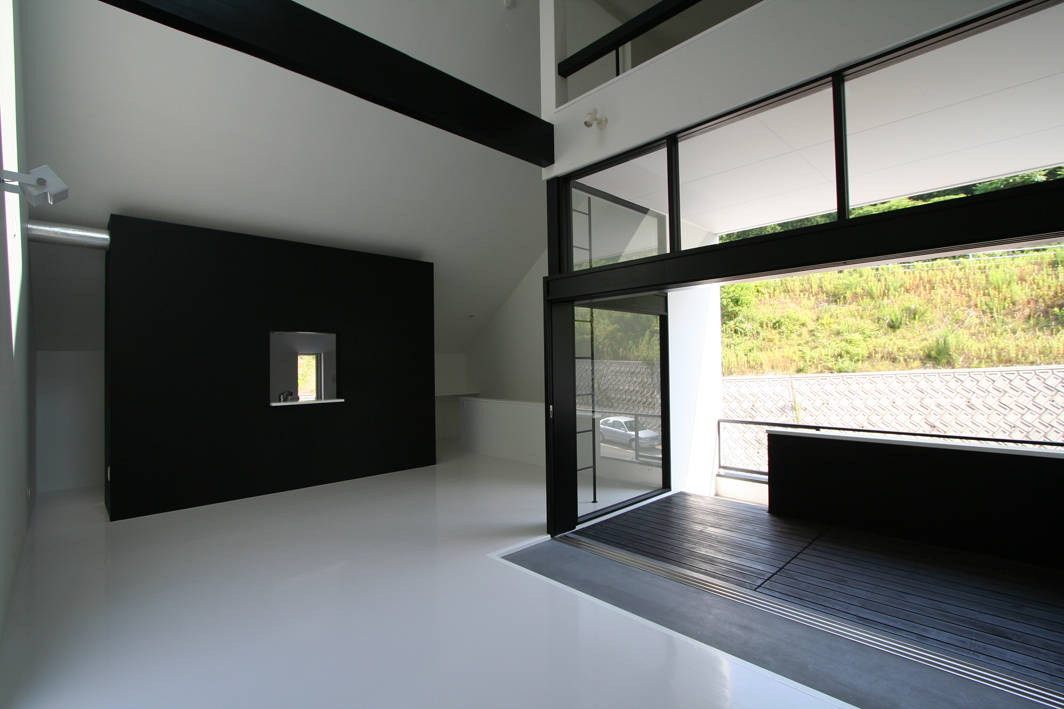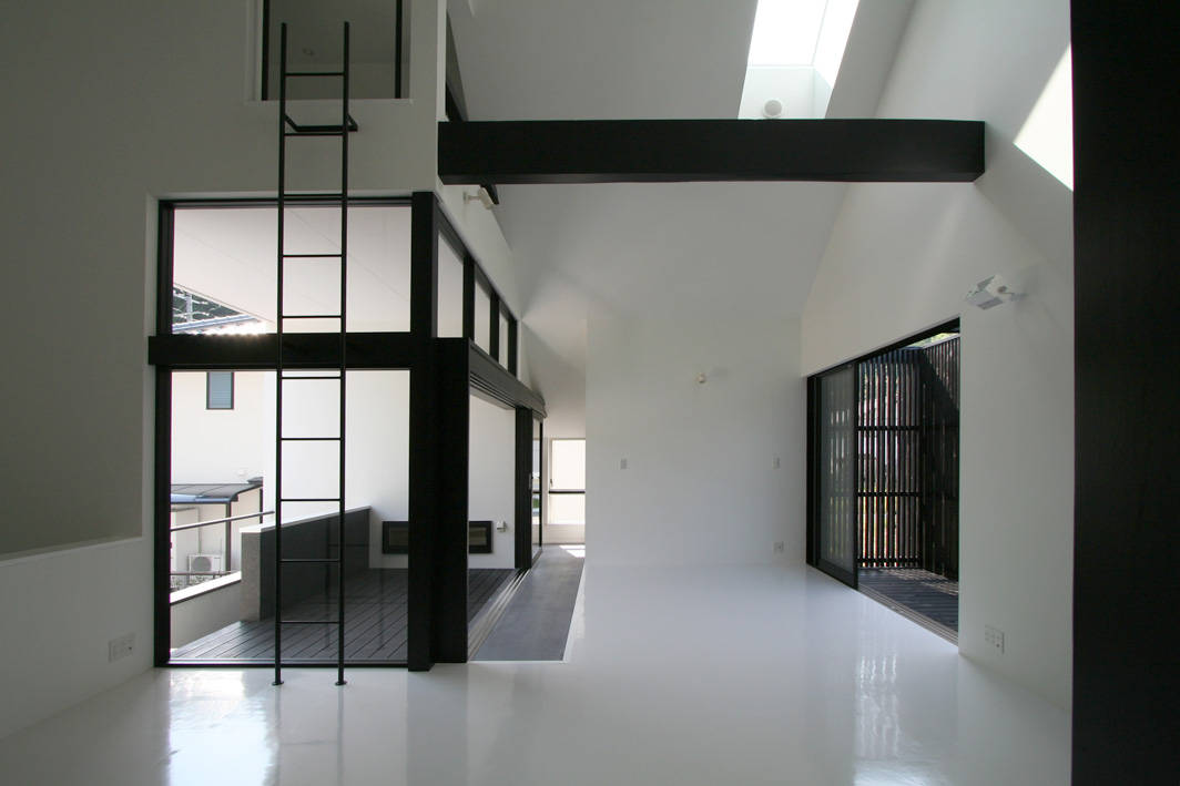家族がいつもリビングを通って生活するように、玄関は2階のリビングに面してつくり、1階から外部階段で2階の前庭にアプローチしてから室内に入るという動線計画にしています。