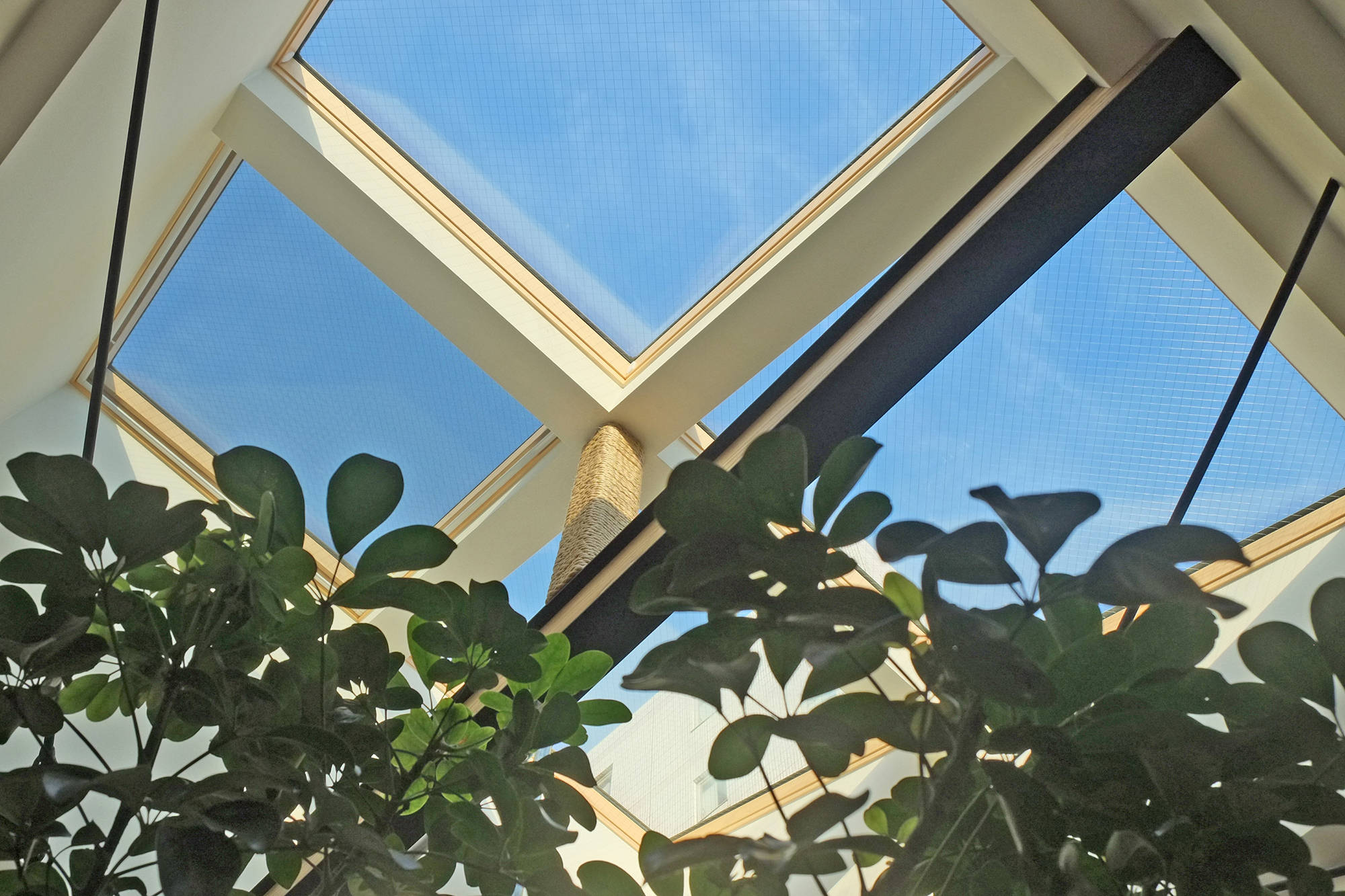 中心部にパティオ(中庭)を設け、視線を考慮した天窓を取り付けました。