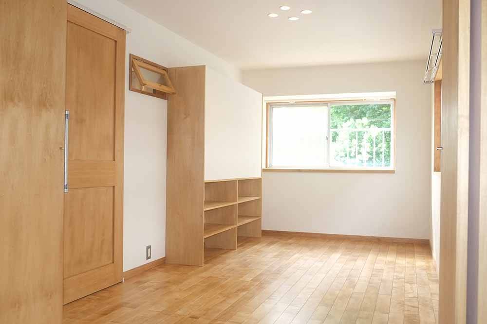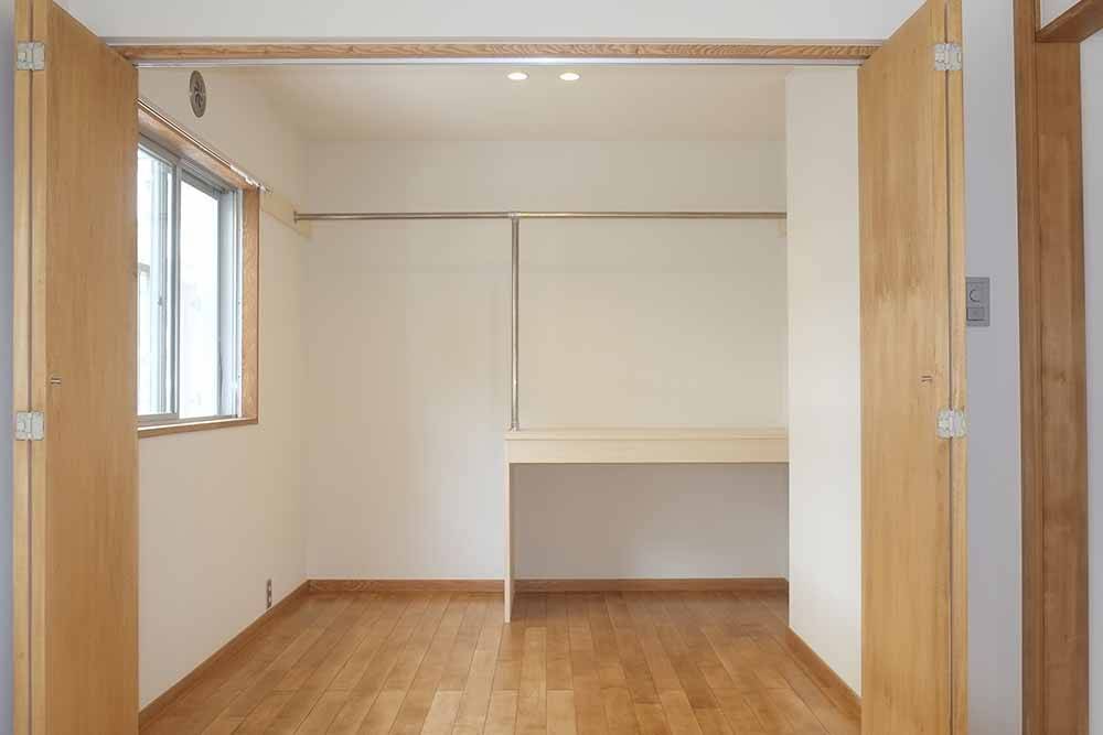 限られた空間で収納予定のものに合わせた造作棚を設けつつ、客間の隣は大容量のウォークインクローゼットとしました。すっきりとスマートに生活できるよう、生活スタイルや動線に沿った空間を設計しました。