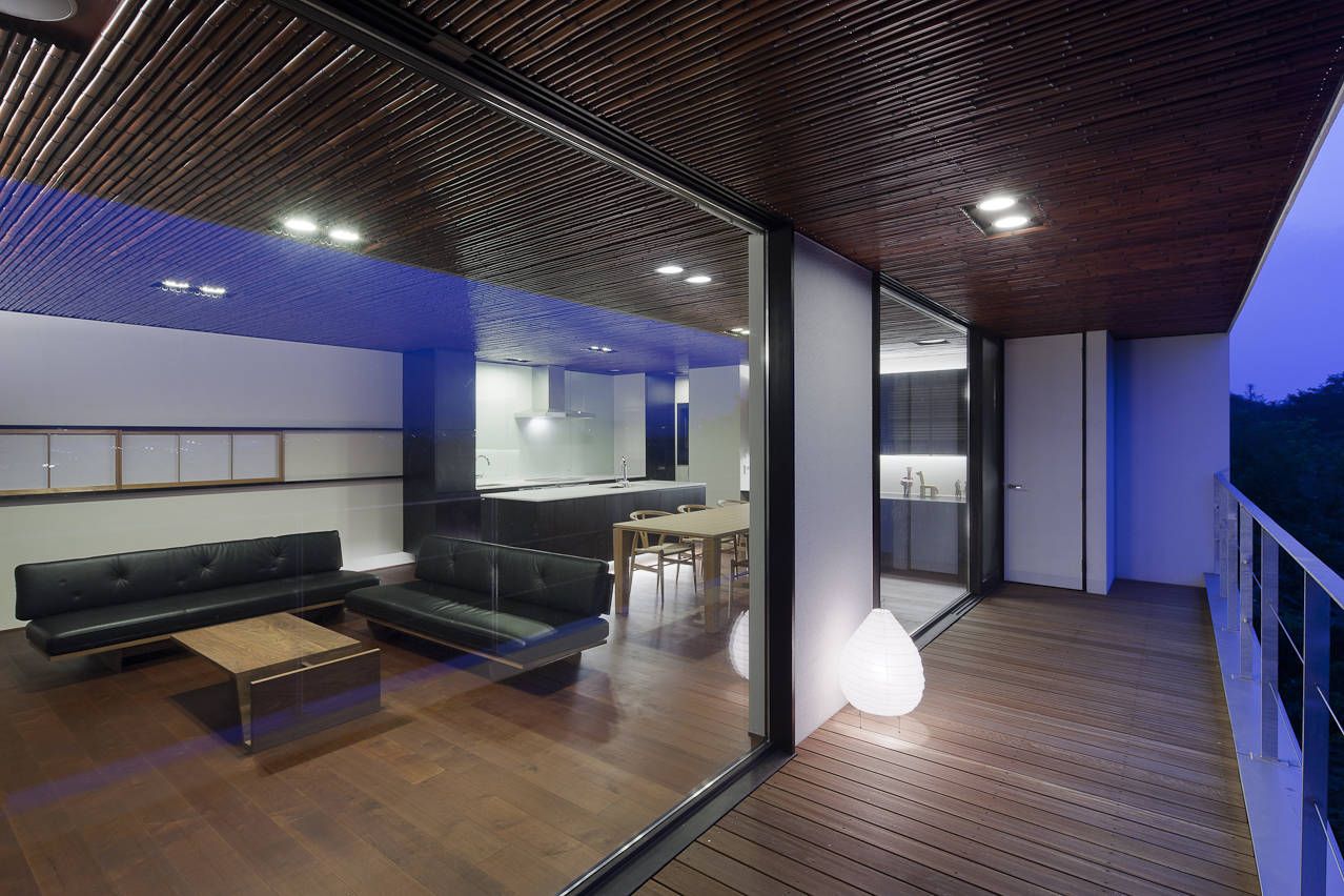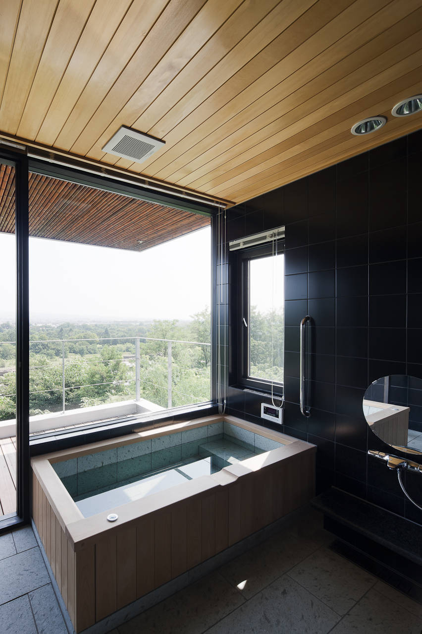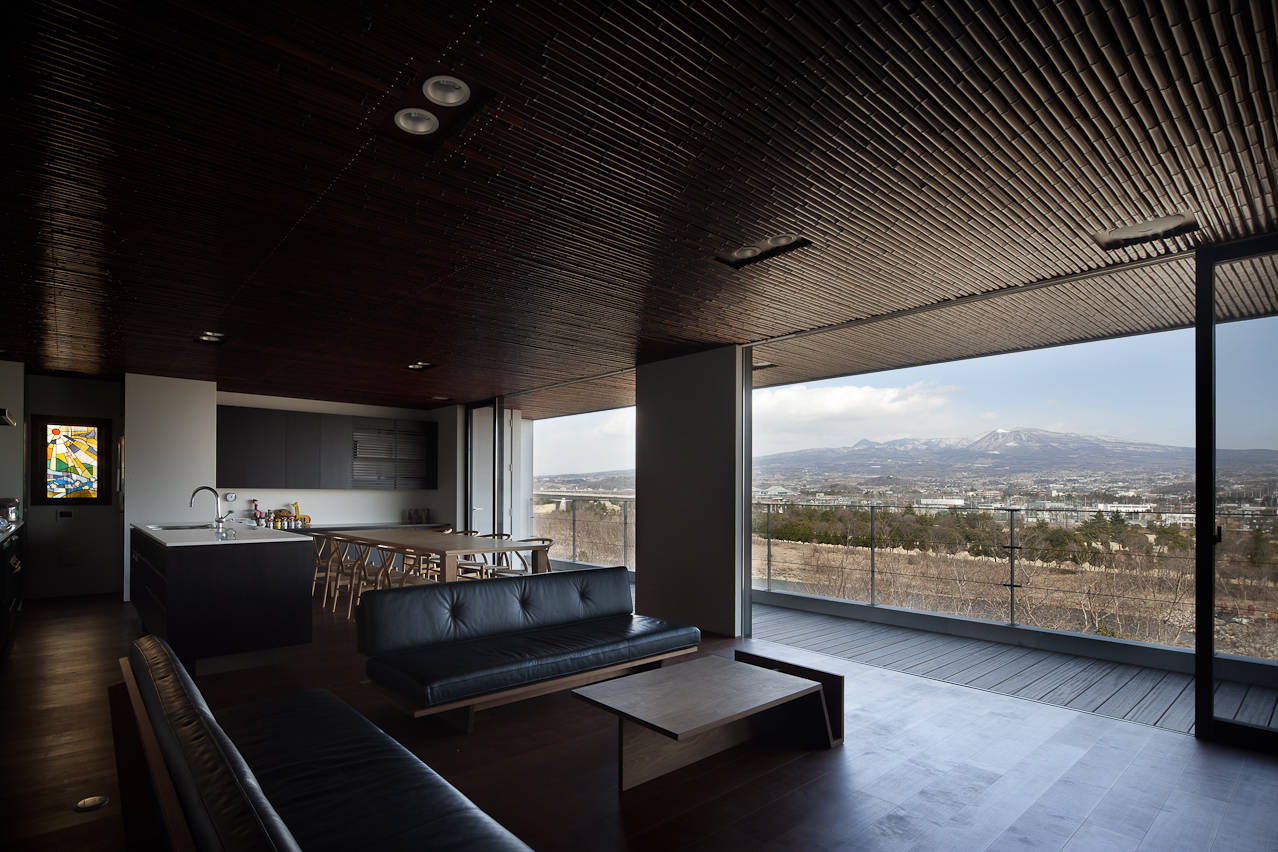 以上のように、全ての空間から赤城山を望めるような配置計画とし、開放的に大きな開口部を設けております。外観はプライバシーを確保しつつ、一歩中に入ると雄大な赤城山を望める空間を演出しました。
