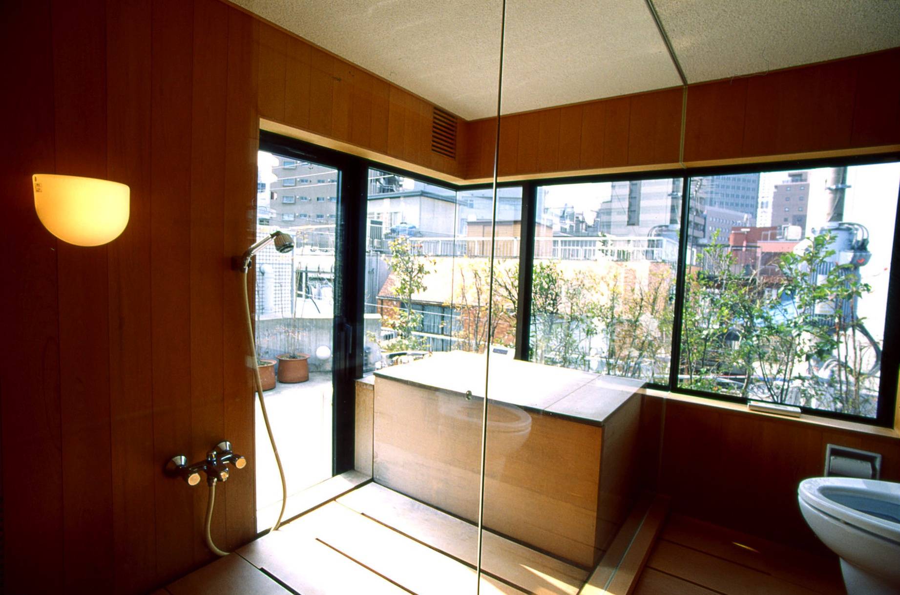 ◆屋上に上がって南と西に庭を持ち、大陽と緑がいっぱい。浴室からももみじとすずめがいっぱい