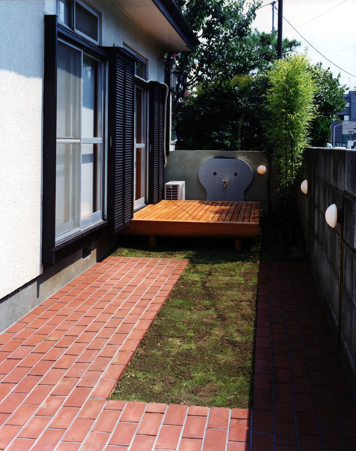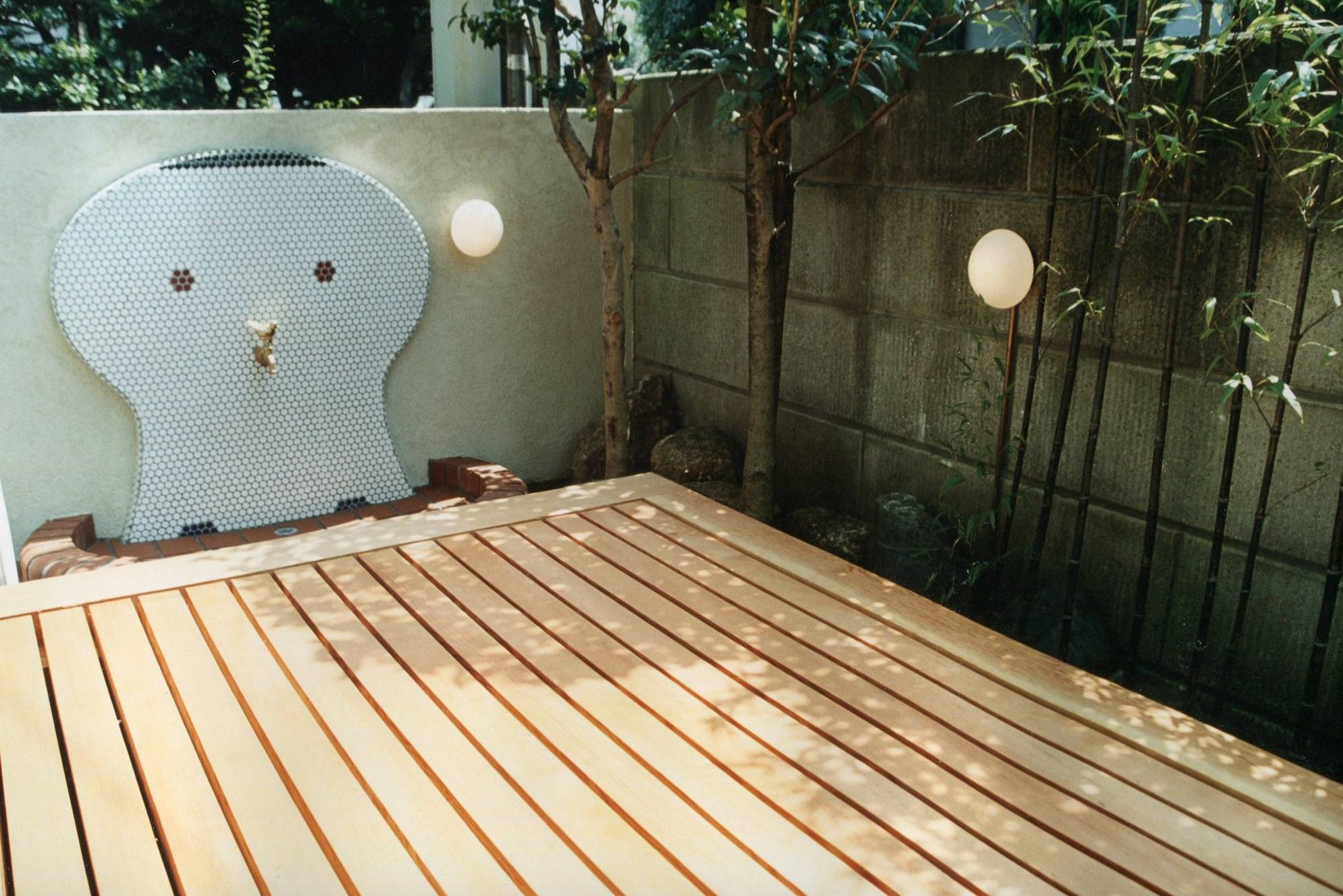 ほとんど使われることのなかった庭は、子供達が遊べる楽しい水場、そして車を退かせると遊び場にもなる、有効利用のできる外部空間とした。