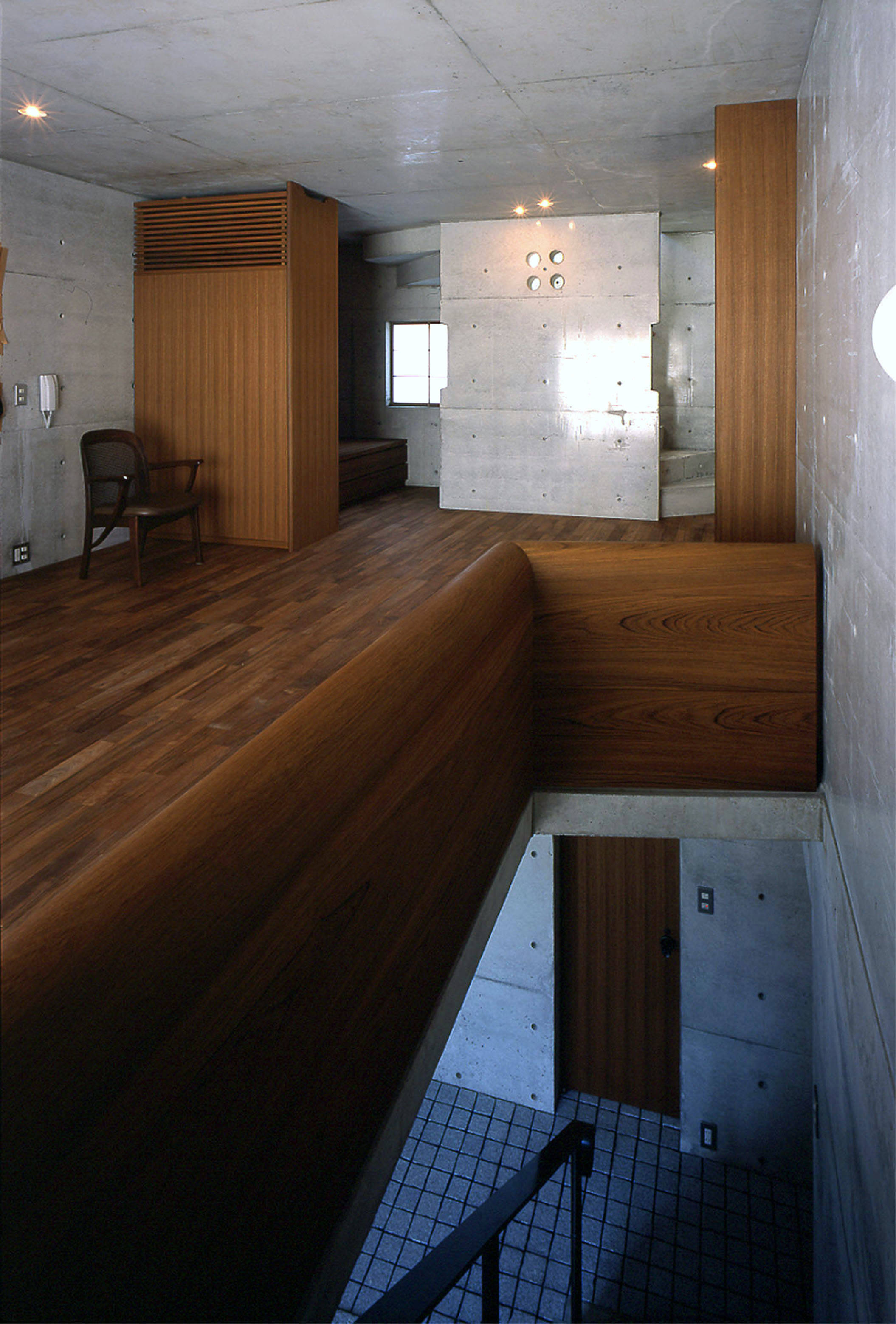 1階はギターの練習スペースを兼ねたプロローグホール、2階は仕事場・住スペースで、内装・家具にチーク無垢材をふんだんに使用している。3階はペントハウス風に仕立て、屋上ガーデンと一体で使用し、植栽や外での食事等を楽しめるようになっている。