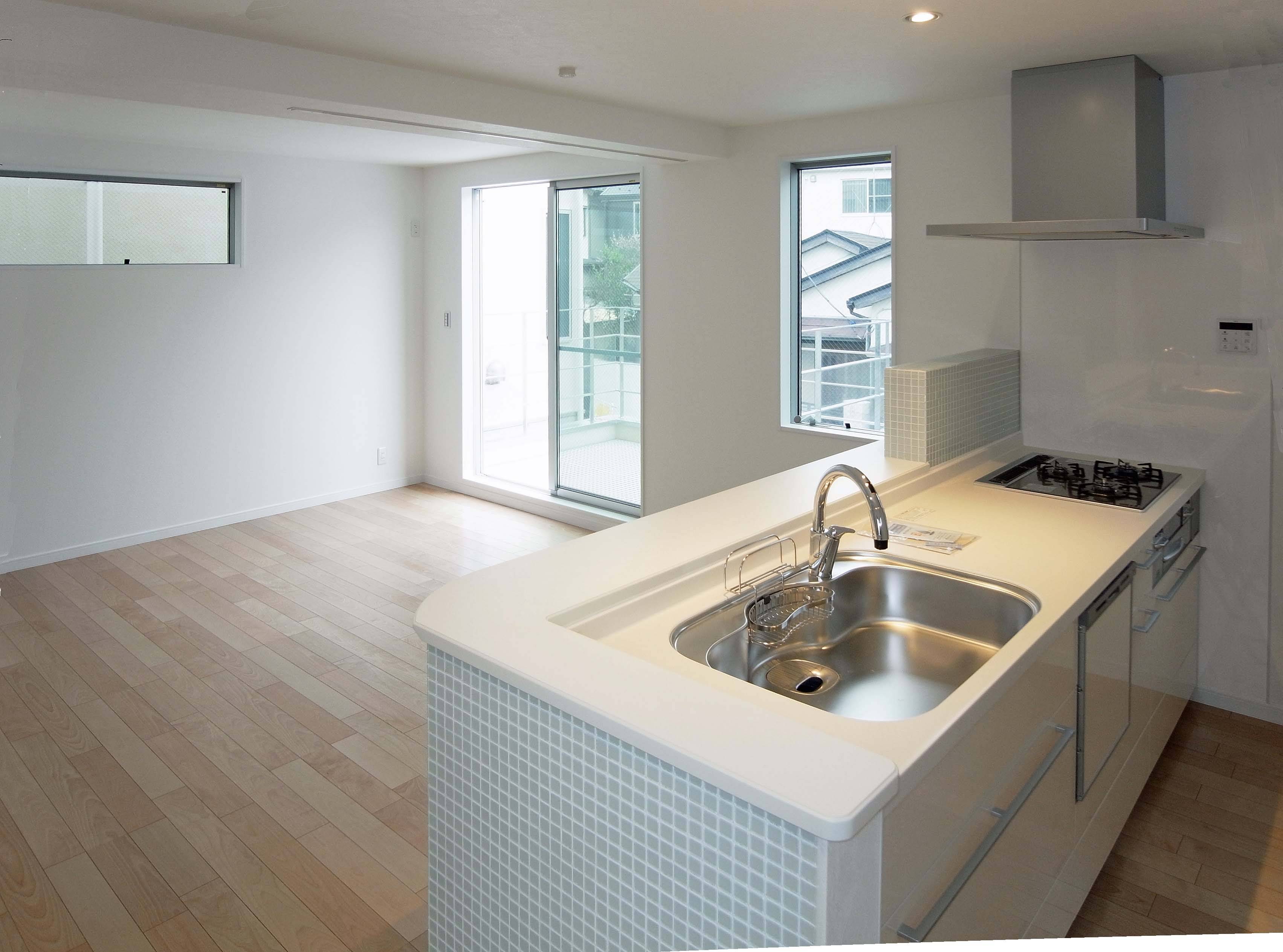 安価キッチンをオープンキッチンに造作しています
