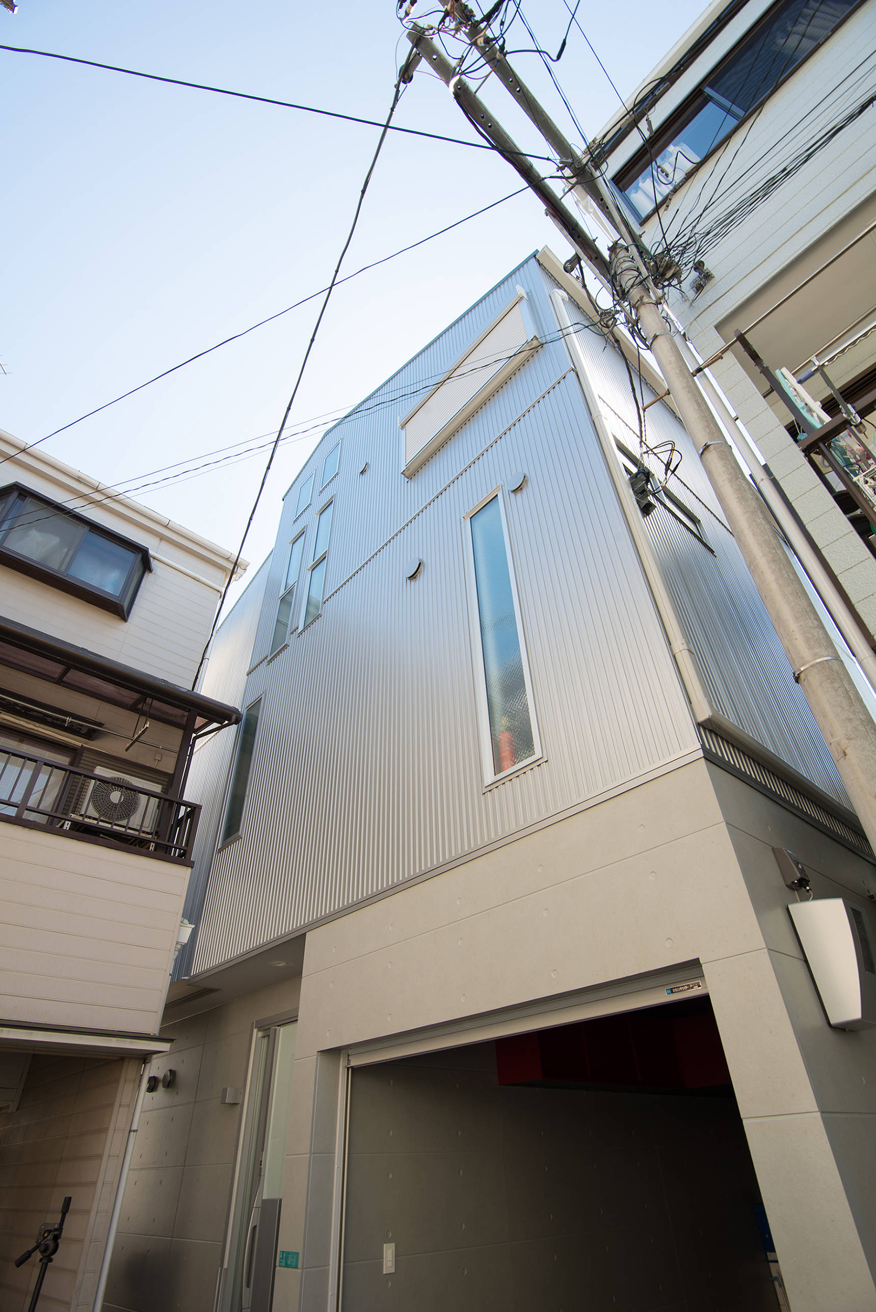 敷地は住宅が所狭しと立ち並ぶ住宅地にあります。