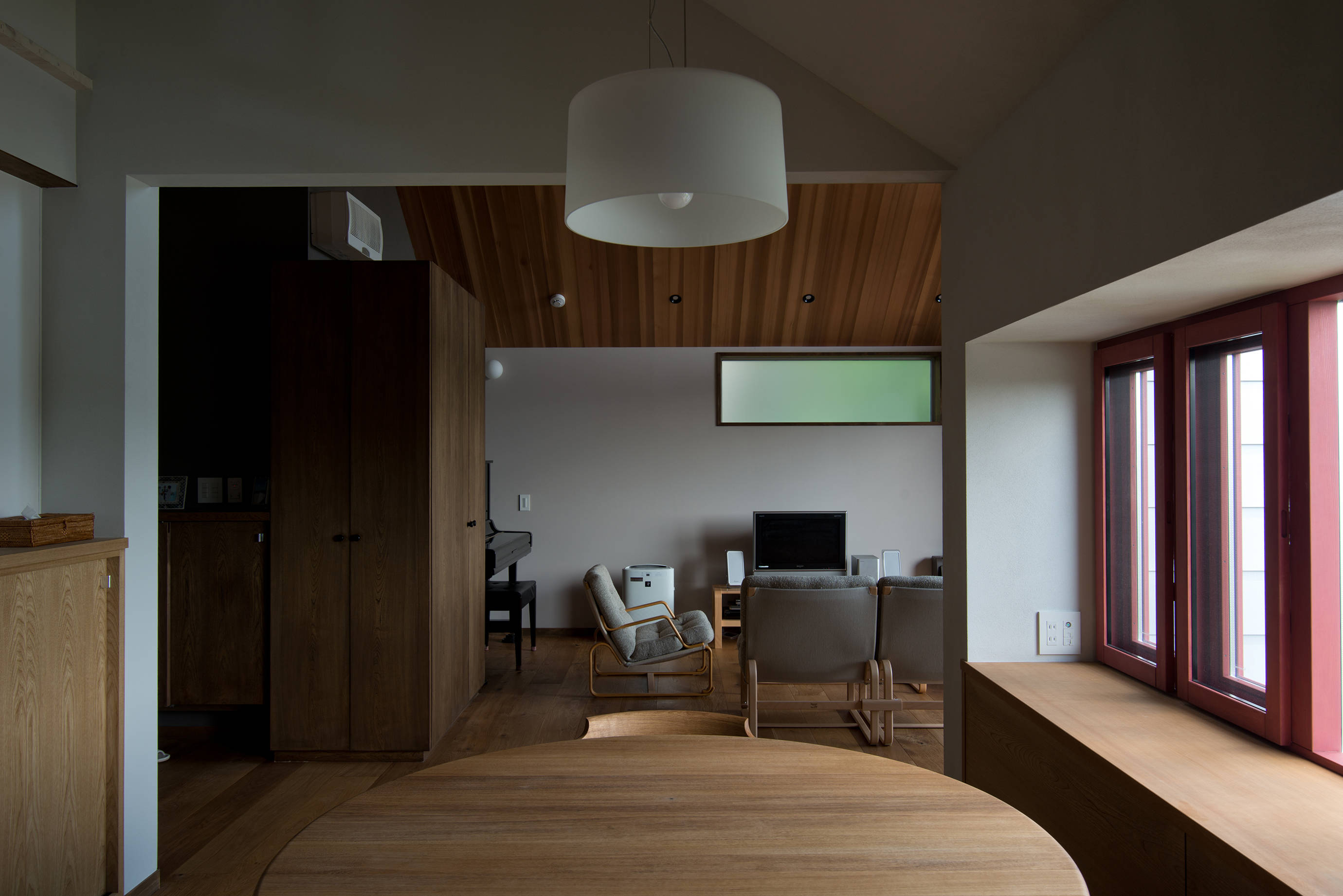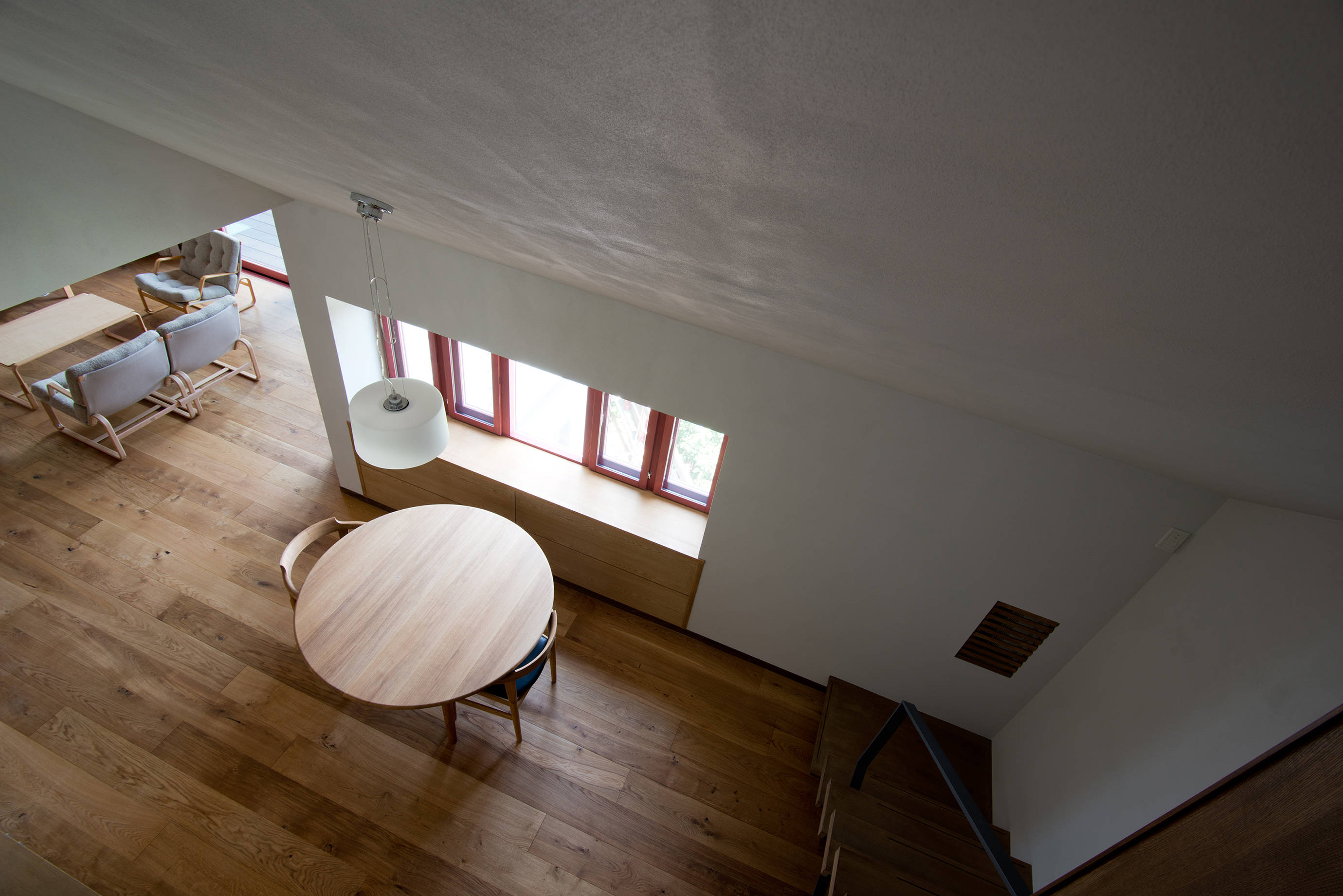 建物は半地下+地上1階の2階建てで、それぞれに親世帯と子世帯の2つの家族が暮らしています。二世帯住宅に起こりがちな音やプライバシーの問題にも工夫をこらし、快適な住まいとなっています。