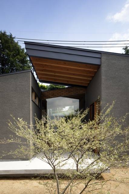 建物をリビングやダイニングが収まる南北に大きなボリュームを中心とし、その東西に寝室やユーティリティーなどの小さな4つのボリュームが付加される平面構成としました。建物の分節化により外部空間が凸凹し、遠近双方の距離感で街と繋がり、また、各ボリュームの屋根の向きを互い違いとし、住宅地にふさわしいスケール感を得ています。