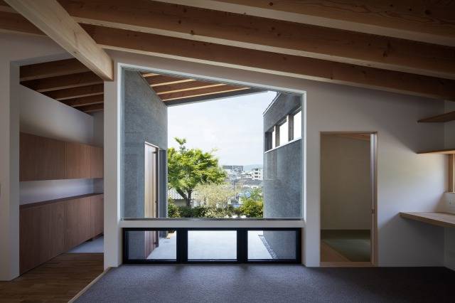 高台からの眺望や敷地内の豊かな緑を、この家族だけでなく街の人々と共有すること、2世帯の距離感を再構築することをテーマとしました。