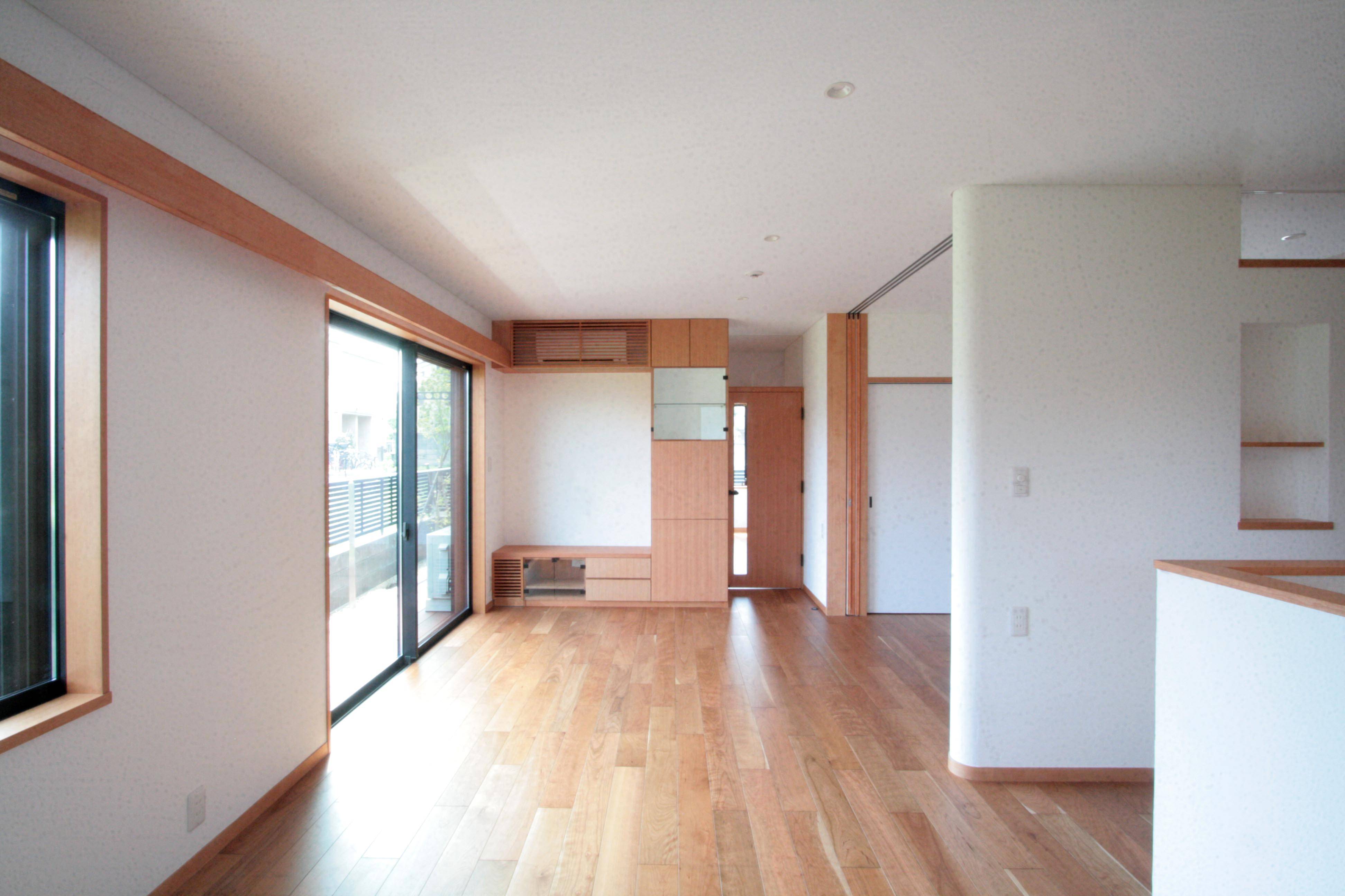床や造作材は無垢板、その他内装材は漆喰、自然塗料、タイルといった自然素材を多く使用した家です。