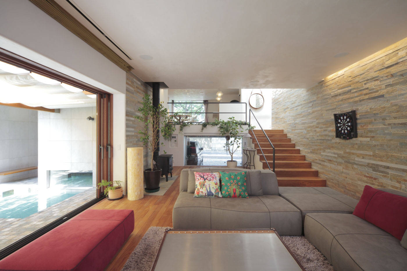その他にもこの3階建ての大きな住宅には、いたるところに空間演出の仕掛けがちりばめられています。各々のコーナーで気持ちの良いシーンが生まれ、それらが連続してひとつのストーリーとなることを目指しています。