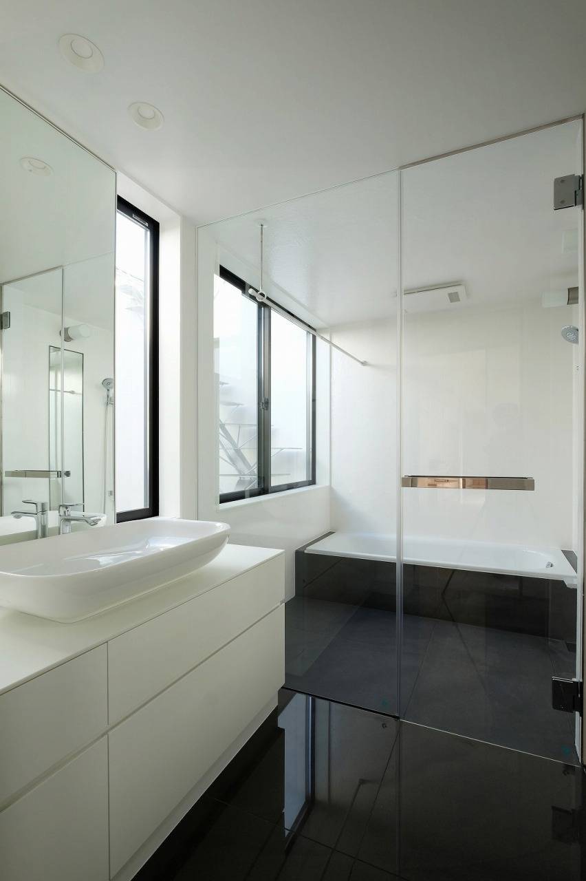 内部は1階がゴルフゾーン、2階が生活ゾーン=猫のスペース、その中心に吹抜があれば採光と通風、そして上下階のコミュニケーションを生み出すことができ、小さなテラスに面する和室や浴室・洗面の窓は、隣家を気にすることなく全開できます。