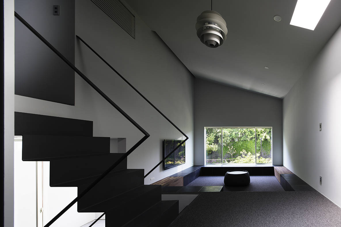 さらにリビングは真ん中を掘り込むようにくぼんだ形状とした。この空間に身をおくと、川の上部の空間が大きく広がり、プライベートな空間ながらも開放感を感じることができる。