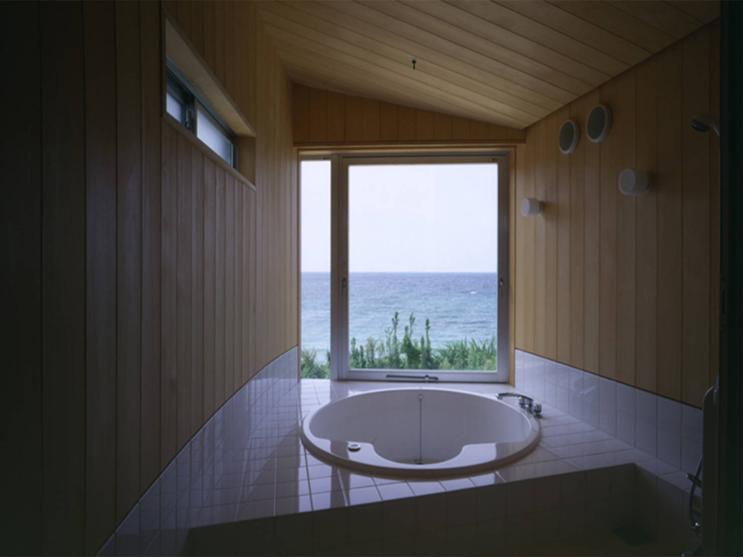 ヒバの無垢材で仕上げられた浴室。 /Photo by 北嶋俊治