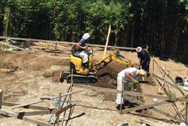 現地は階段130段ほど登った山の中腹。日々階段トレーニングできるという恩恵に加えて眺望がすばらしい(笑)。