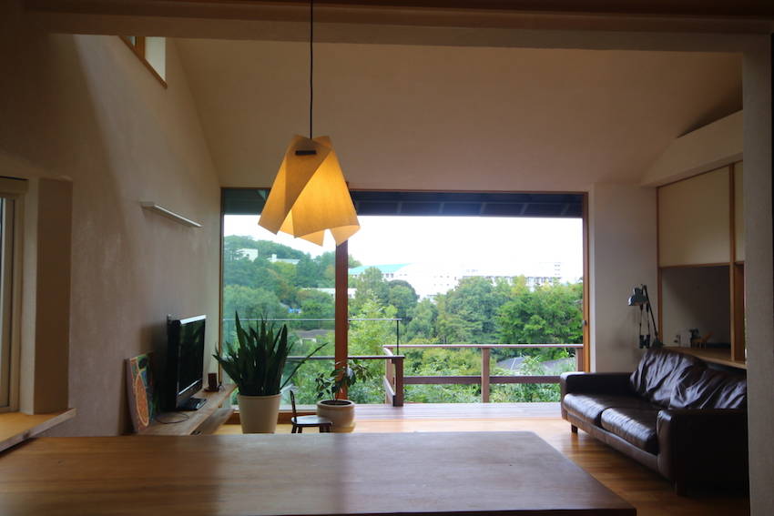 敷地は東が山側、西が谷側の傾斜地のため、眺望のいい西側に大きな開口やデッキを設けた。「家は南向きに建てる」というセオリーから外れるがこの敷地で眺望を取り入れないわけにはいかない。