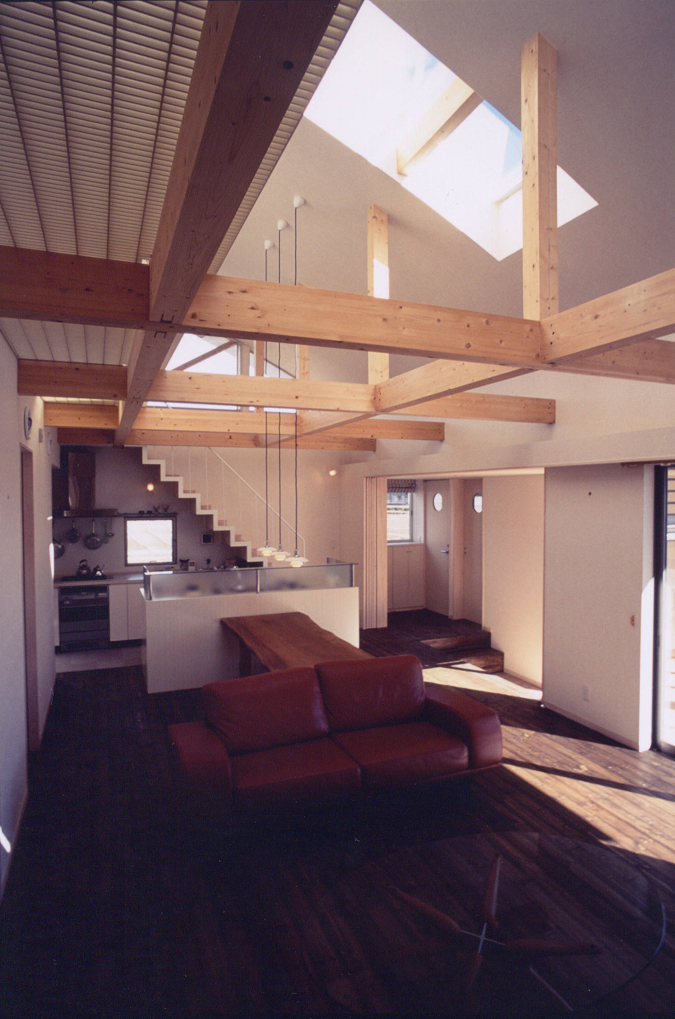 板状の壁と屋根でシンプルに囲った室内空間をベースとし、壁/...