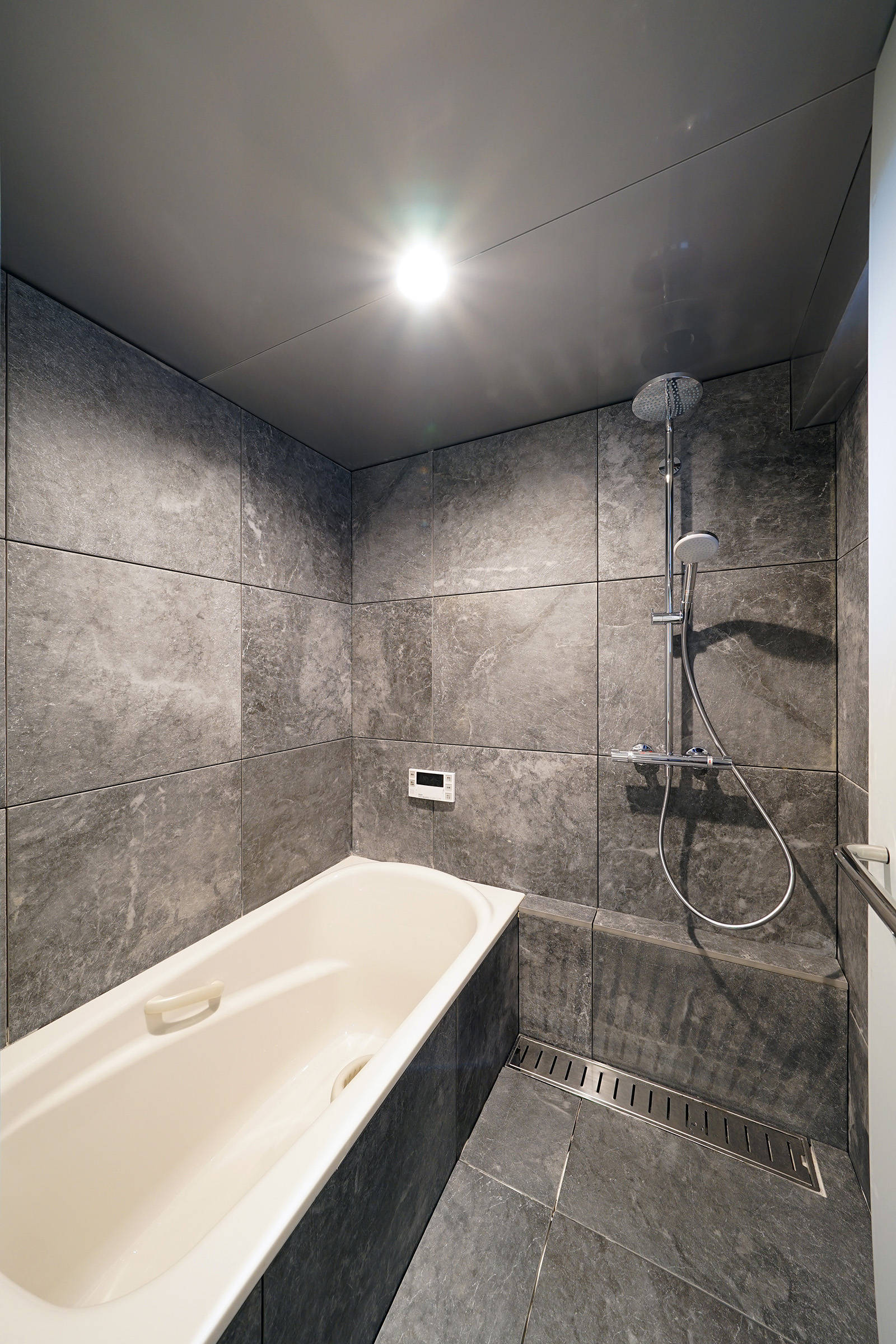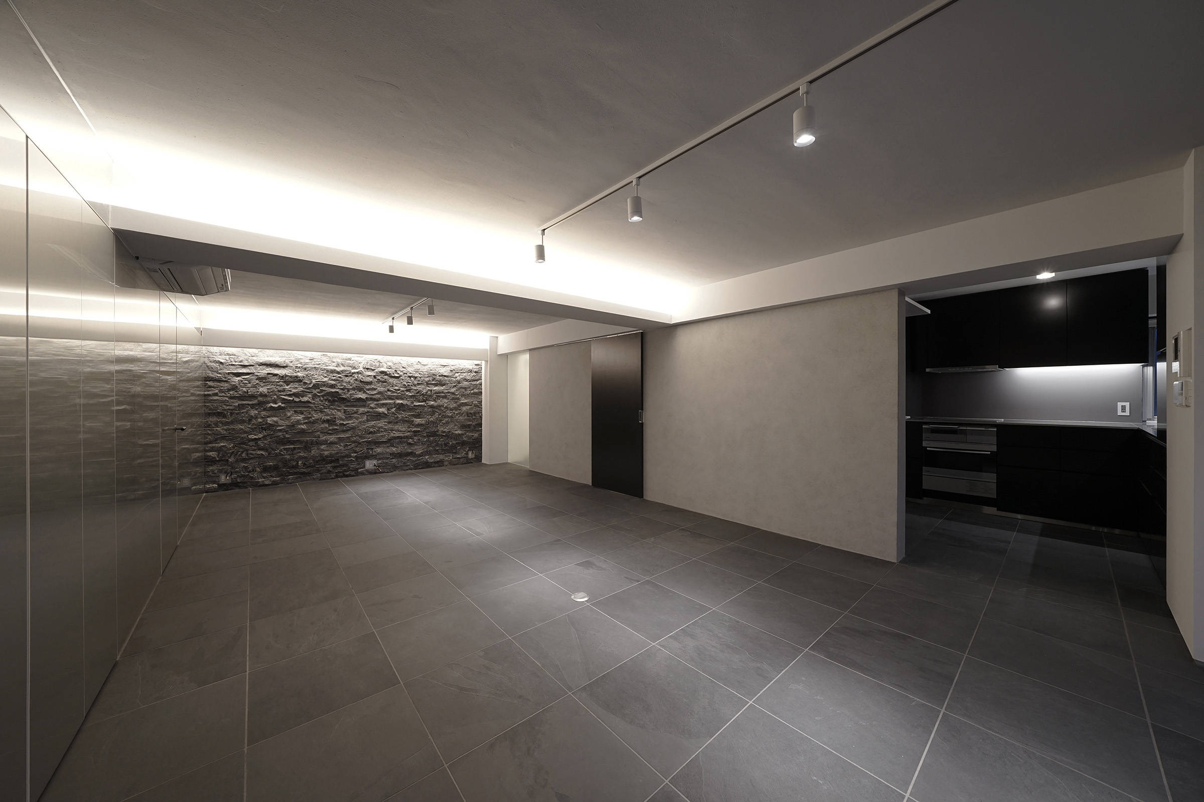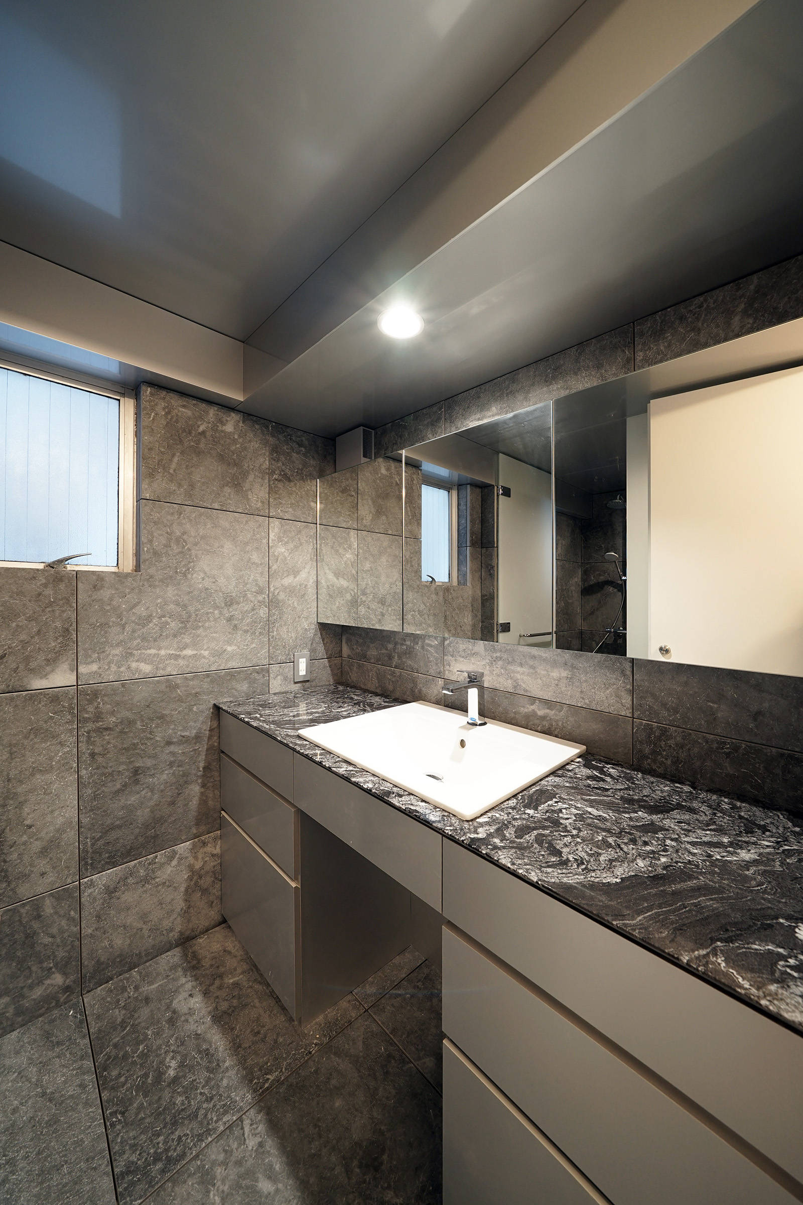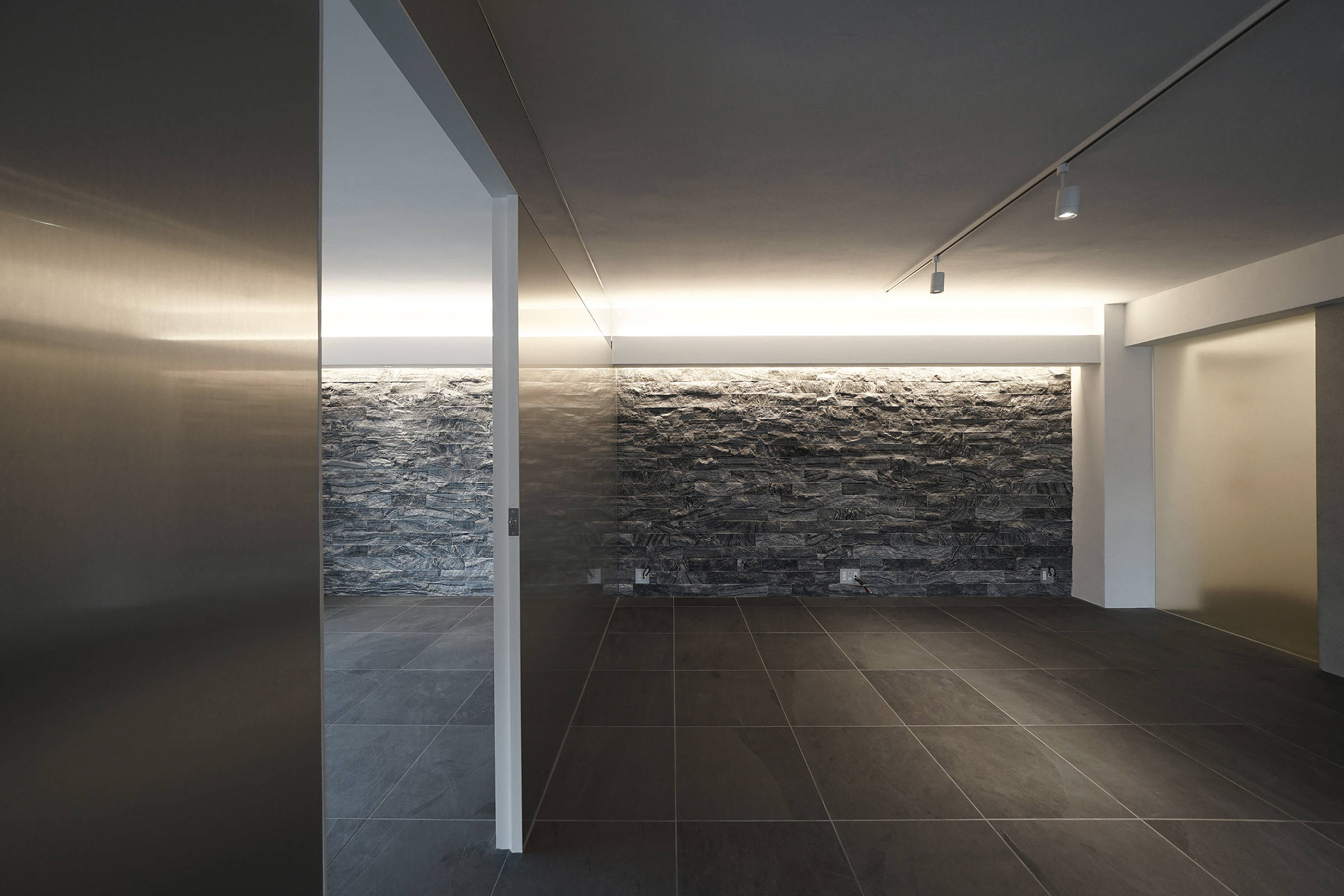 内装は床の石張りをベースに石やメタルをアクセントに使いながら仕上ています。