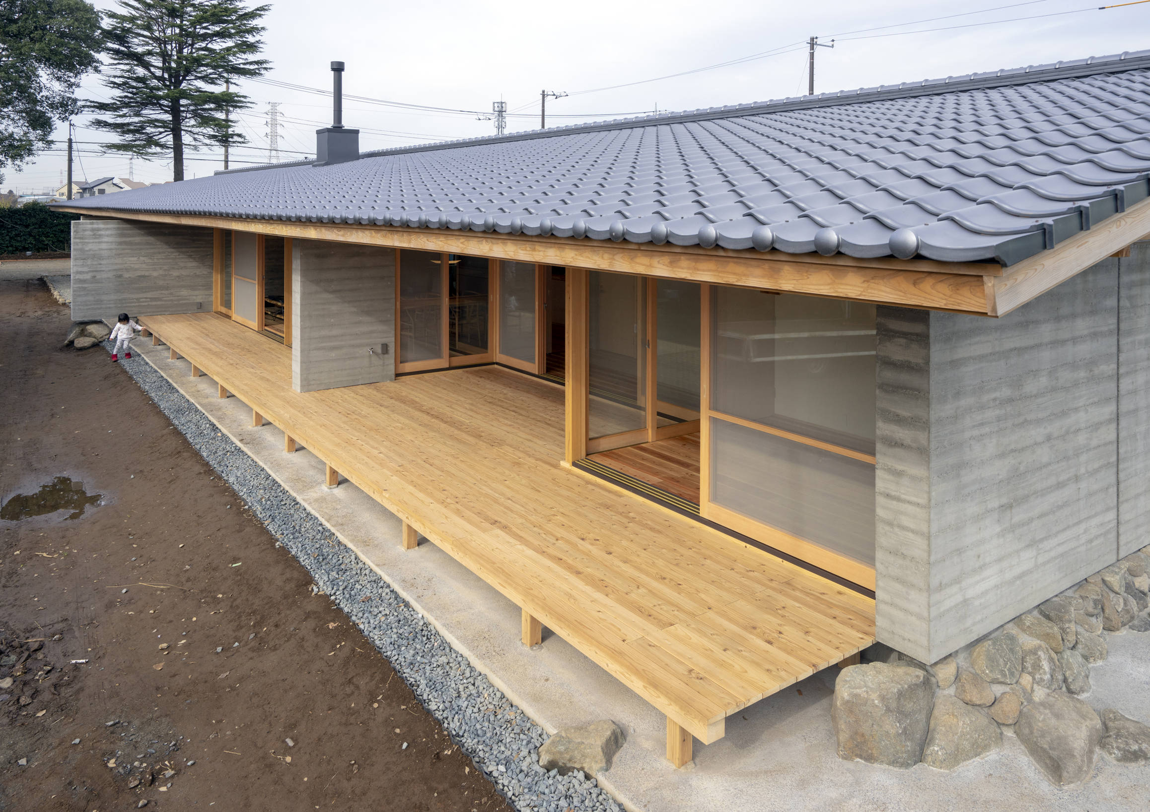 時間と共に都市化の進む、都市近郊の田園風景の中で、いかに伝統を引き継ぎながら、未来に向けて新しい家族のための新しい住まいをつくることができるか、この住宅のテーマはそこにある。