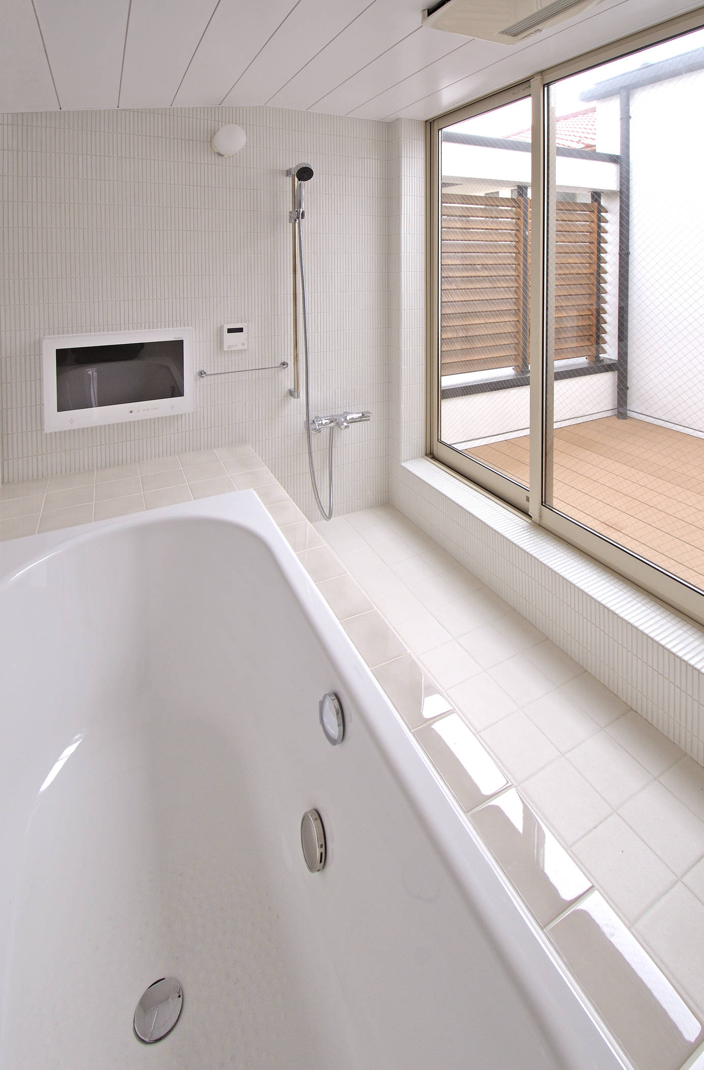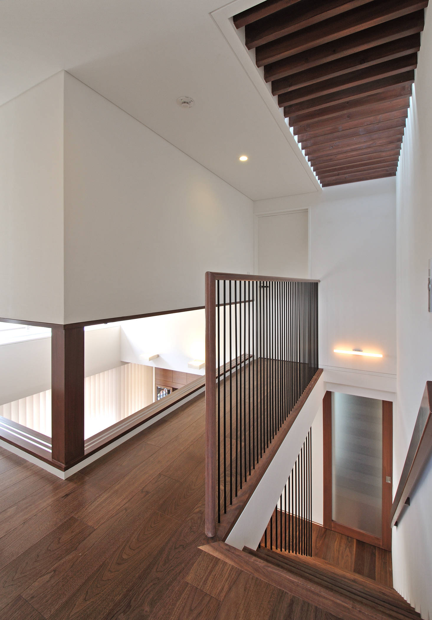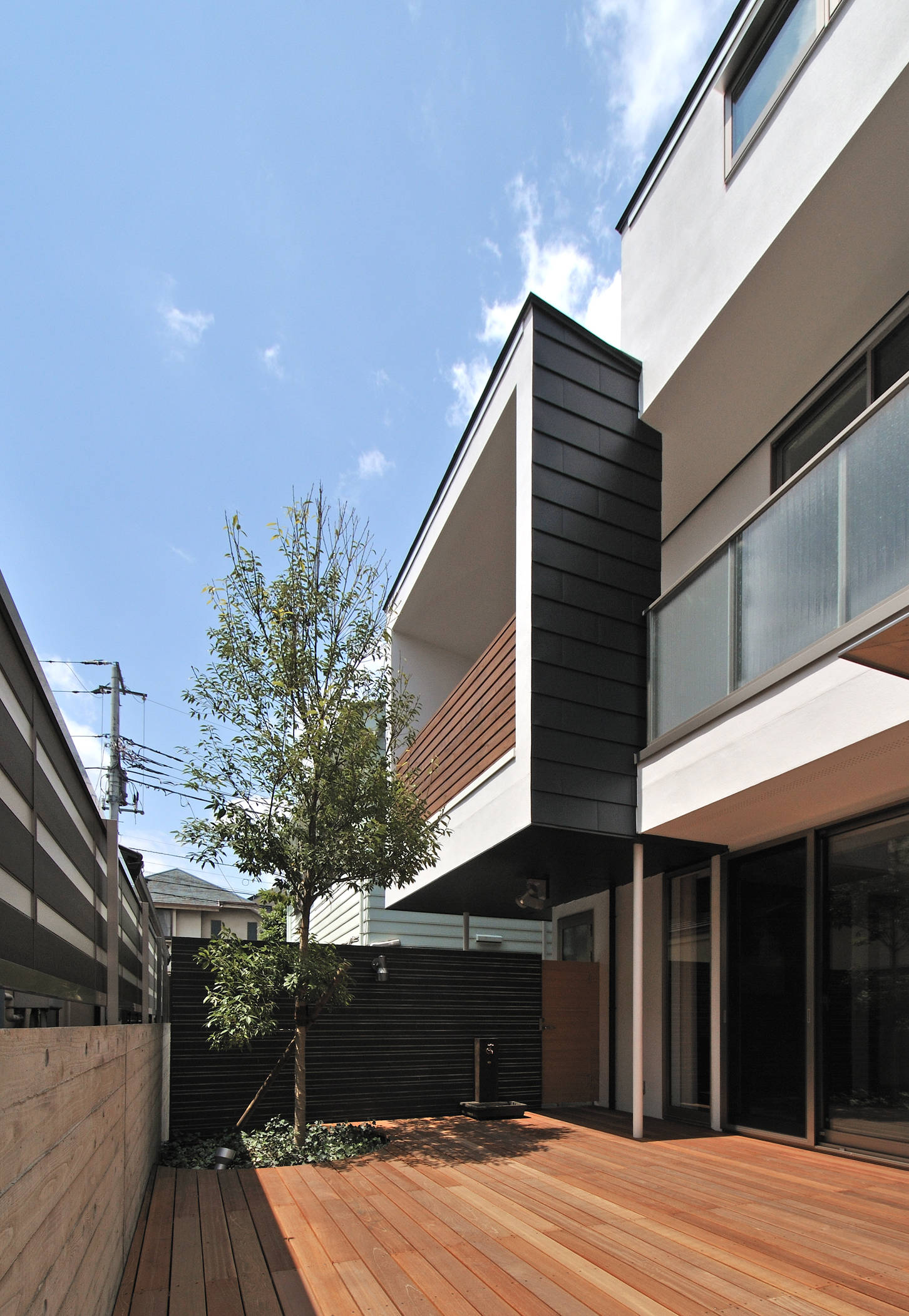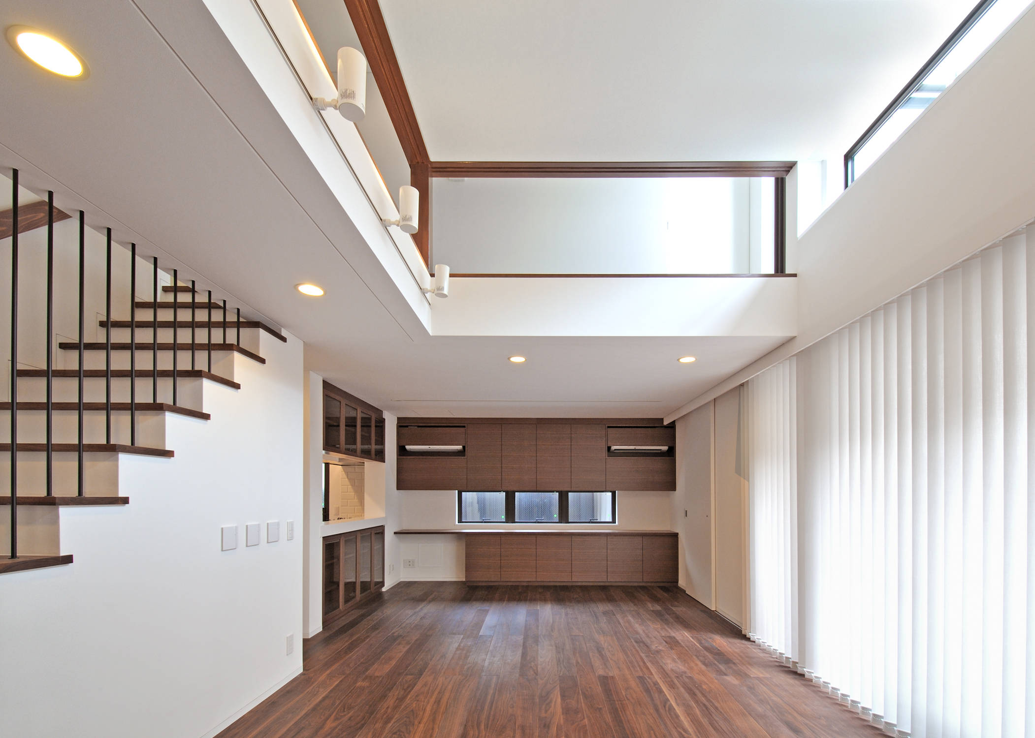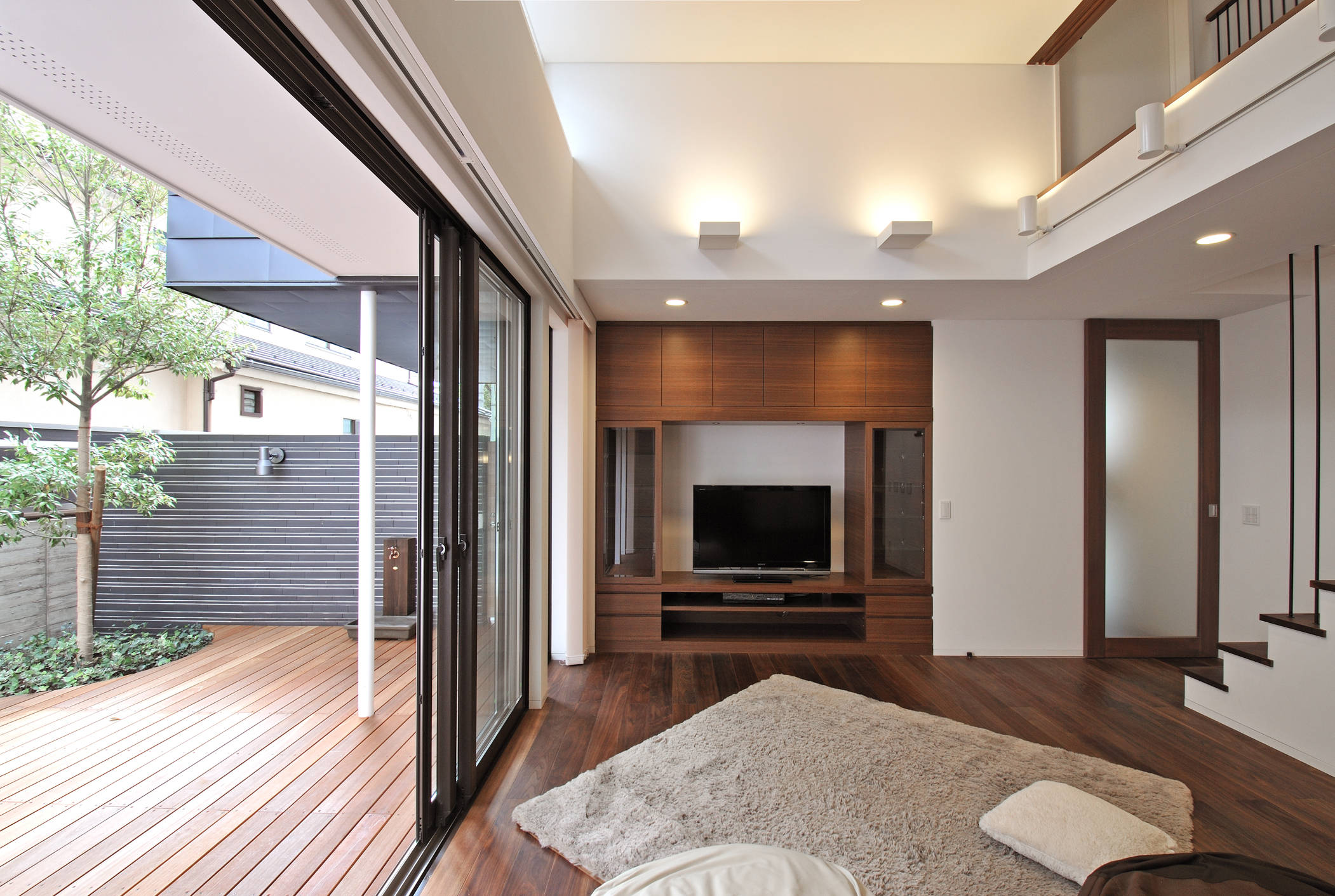 家の中のパブリックな空間とプライベートな空間が明快なゾーニングにより配置されているので骨太な住空間が形成されており、住宅密集地であるが外部を安易に遮断する事を避け、なるべく伸びのびとした建築としている。