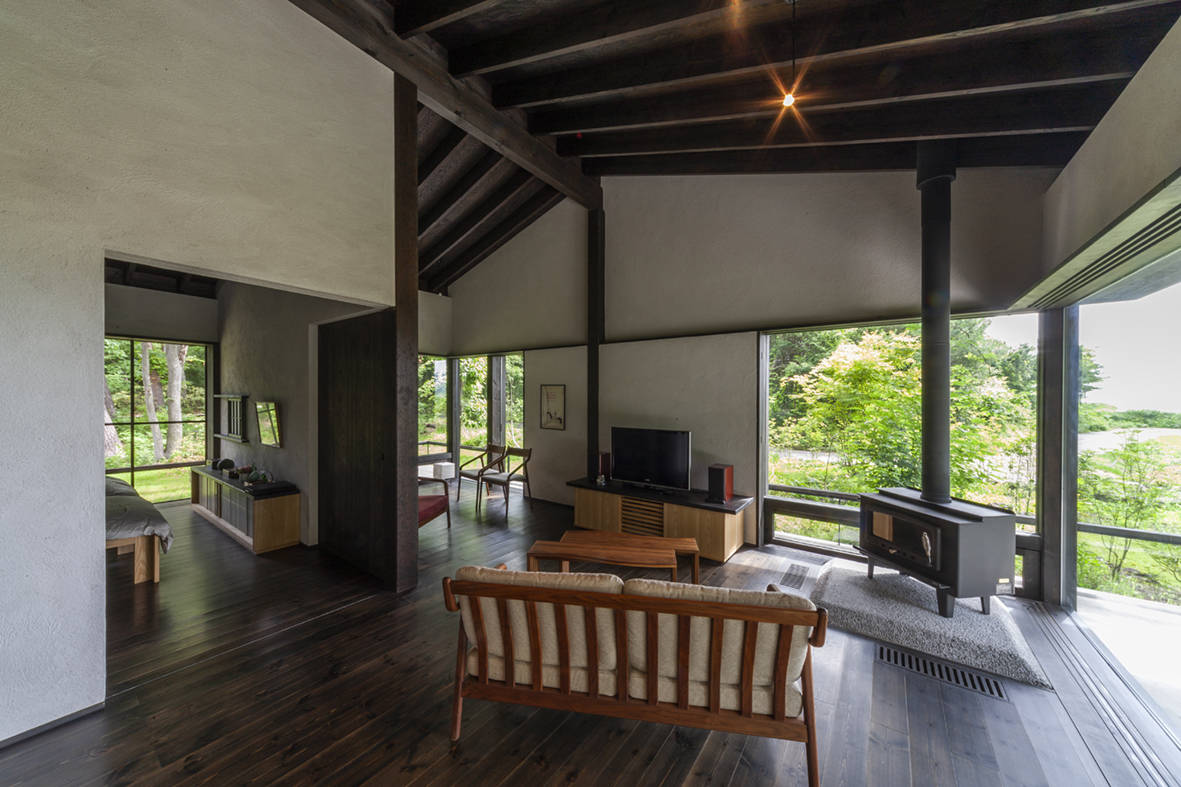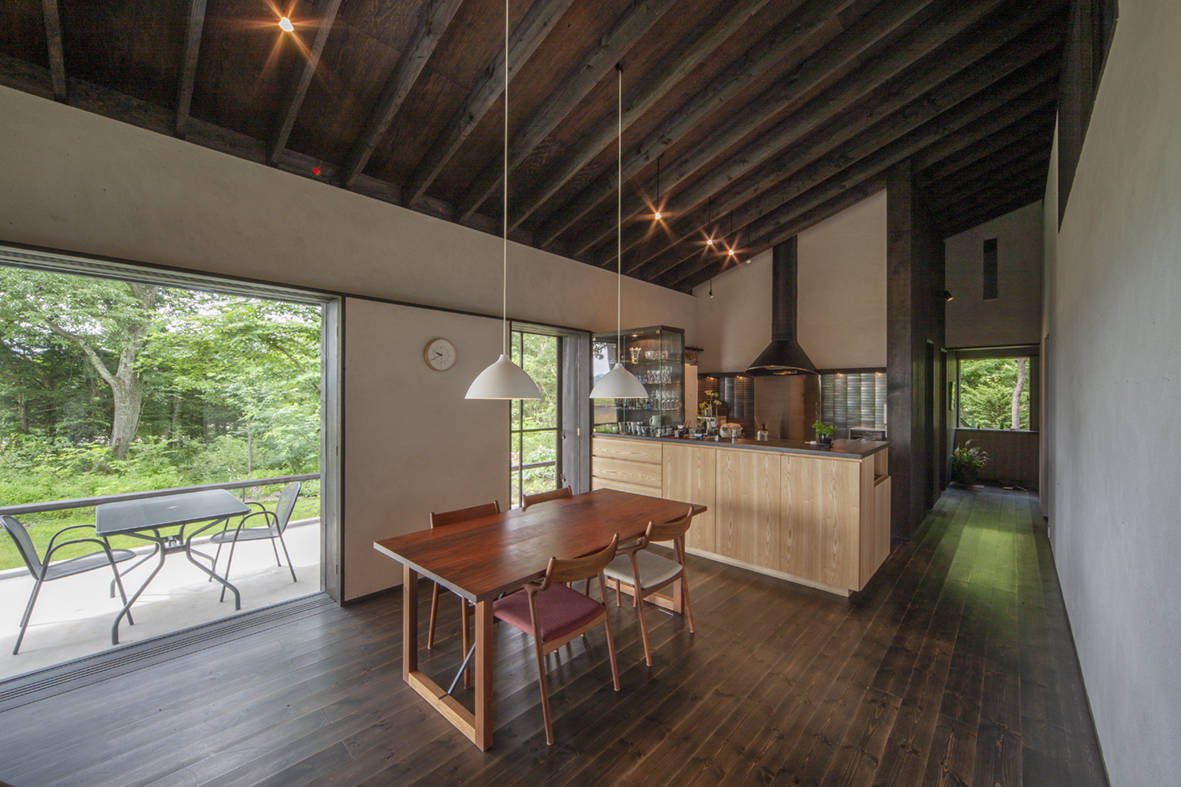 東京の暮らしを軽井沢に移して、クライアント夫妻の念願である終の棲家をつくり、自然の木々の中で新たな生活を楽しんでもらうための住宅である。