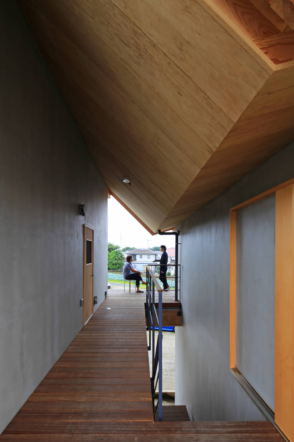 このデッキテラスと屋根は、行き止まりのない自由な動線と好きな場所に留まる事を可能とします。プライバシーを確保できる室内から自分のテリトリーをどこまで広げていくかは住人の判断に任されており、デッキテラスや庭の好きなところで植物を育て、本を読み、洗濯物を干し、好きな景色を眺めることができ、そして季節によって旬な農作物を取りに畑へと降りていくことができます。