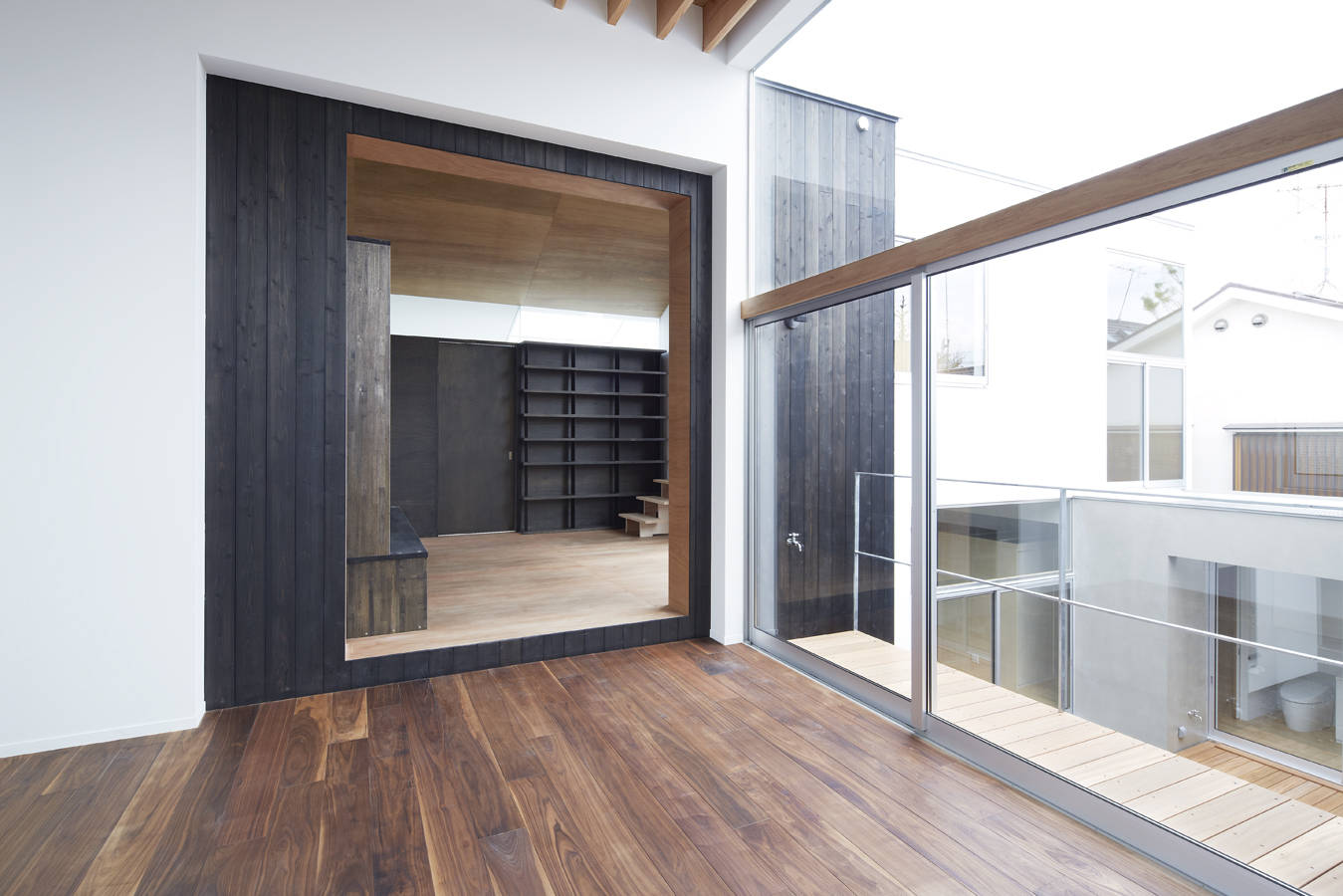 三世帯住宅の計画です。単純に各世帯が暮らすゾーンを割り振った計画をしても、将来的に家族構成や周りの状況が変化してしまうとうまく活用できない場所がポッカリできてしまいます。世帯数にとらわれず家族構成や周りとの関係性の変化に対応できる住まいをつくることが本計画の大きな目的でした。