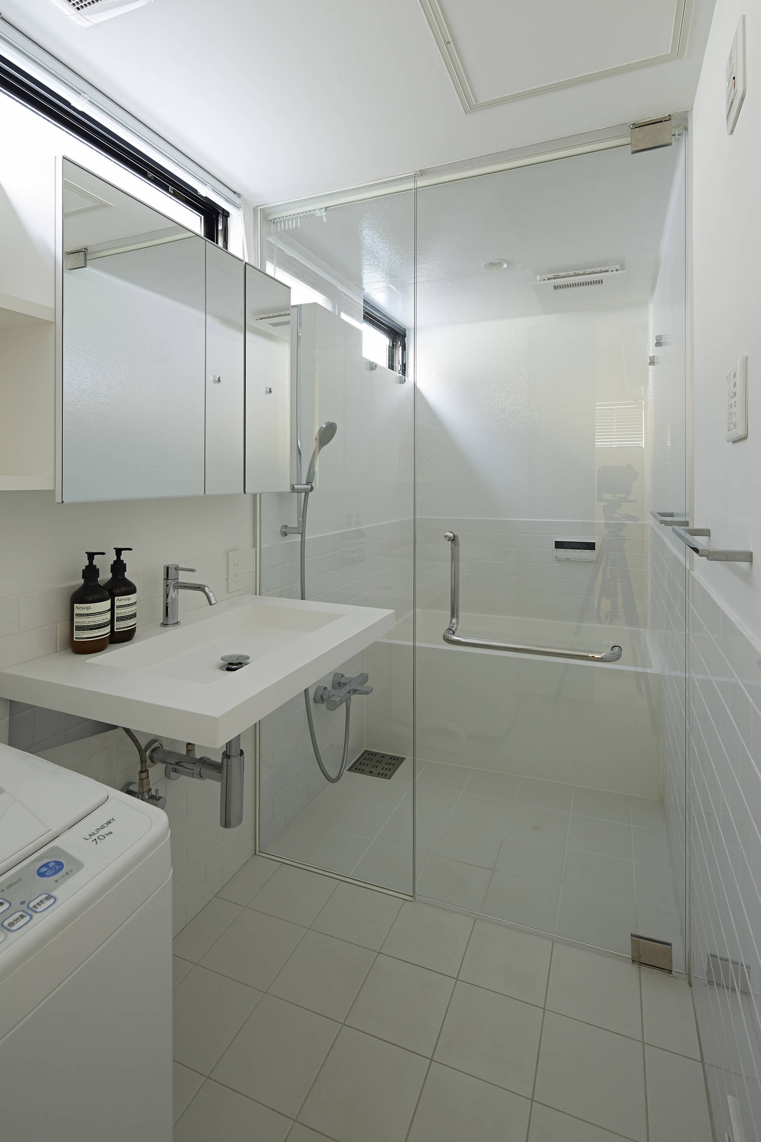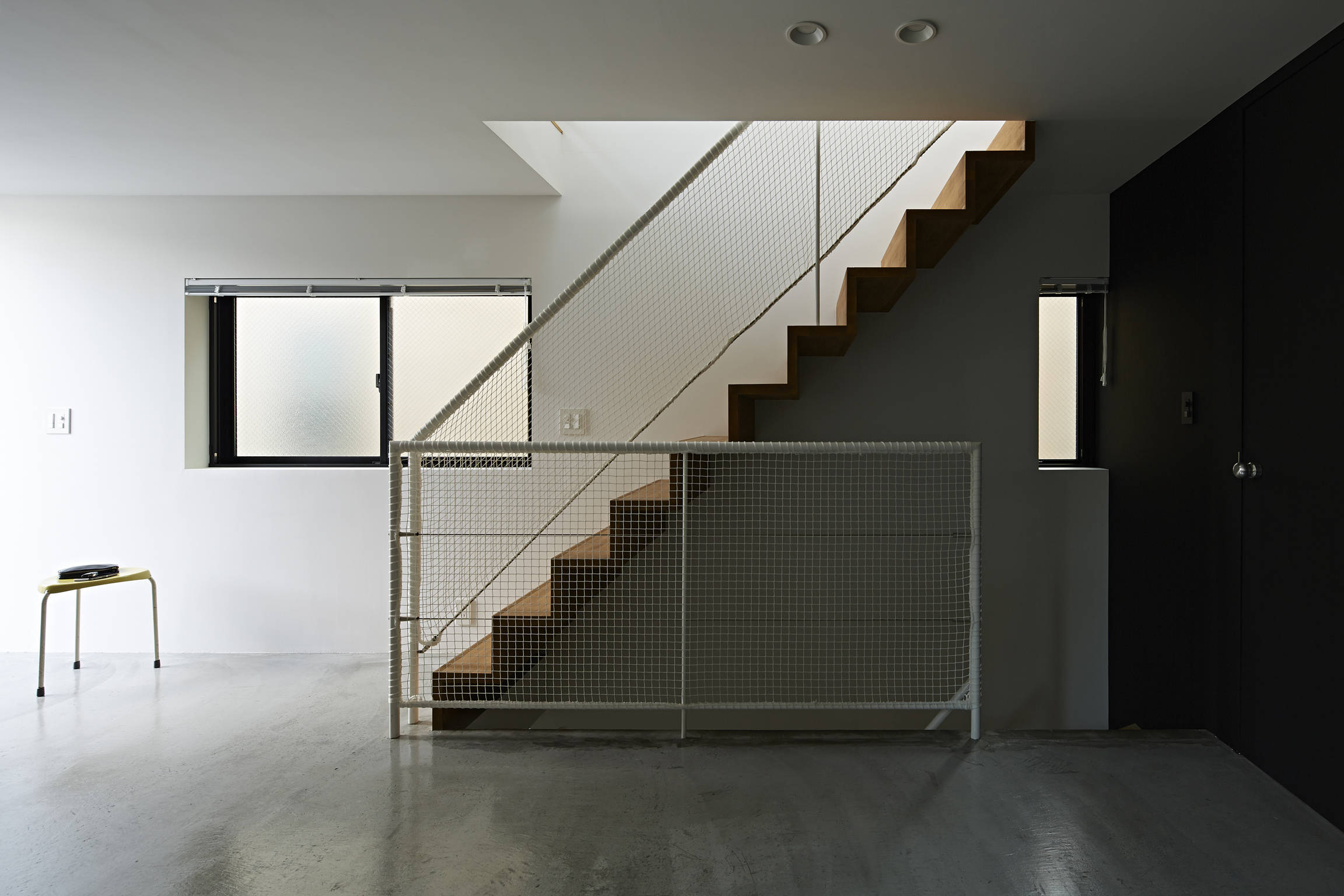 地盤面に近い1階や地下では、いつもなんとなく地面や街を感じます。床全面が土間で住宅内外の中間的な雰囲気の1階、ドライエリアから外部を感じる地下は、使い方を限定せず暮らしの変化を柔軟に受け止めるおおらかな場です。