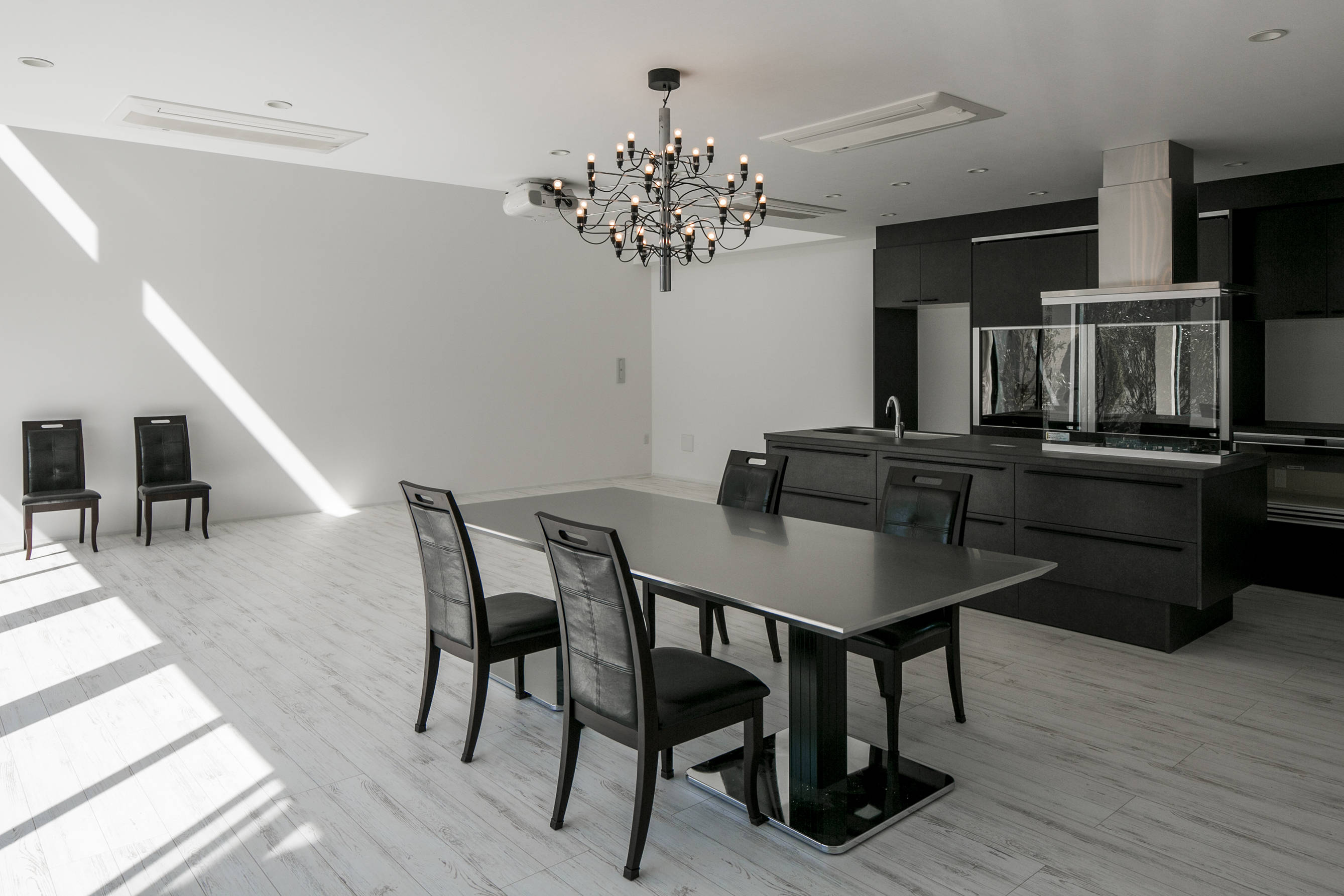 150坪を超える床面積でありながら、ラウンジを除く部屋数は各LDKに加えわずかに4室。非常にのびやかな空間が連続する住宅になりました。