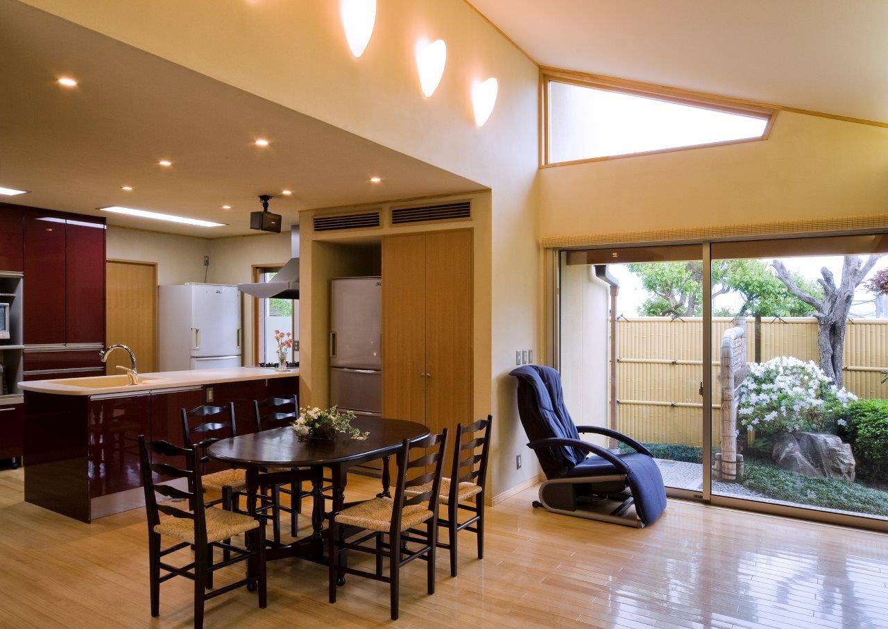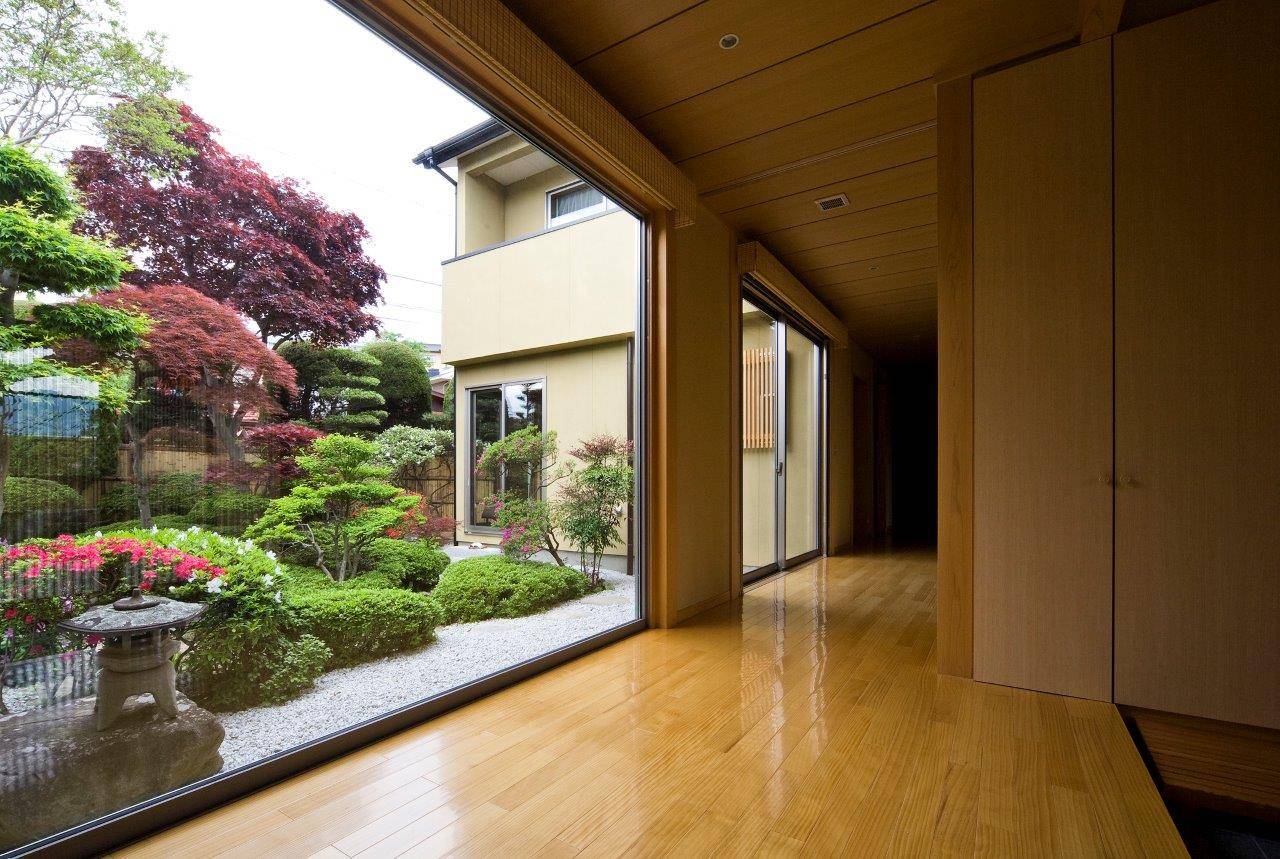 建築主のおじい様が建てた木造平屋の住宅が、地盤沈下を起こし、やむなく建てなおすことに。木造ですが、RC造並みの基礎で固めています。既存家屋には、美しく手入れされた中庭がありましたので、設計の中心にすえました。建築主は18代続く名家で、盆と正月には、一族40名ほどが集まる宴会が出来るようにしたいとのご要望。これには2間続きの和室で解決しました。男子用のトイレを設けることも提案し、また、女性陣がお手伝いしやすいキッチンを考えました。松本市は冷房がいらないとのお話でしたが、温暖化や夏の宴会時を想定し、ある程度の冷房設備も取り入れました。完成後に中庭の苔は、おばあ様が丹精を込めて育てられたものと知り、この庭を残して本当によかったと思っています。基礎は鋼管杭を打ったしっかりとした構造にし、活断層対策をしています。玄関先の樋などに、旧家屋の銅製のものを利用しました。現場に通いながら、松本市の主なお蕎麦屋さんを訪ね、サイトウ記念フェスティバルも堪能できたことが、何よりの思い出です。