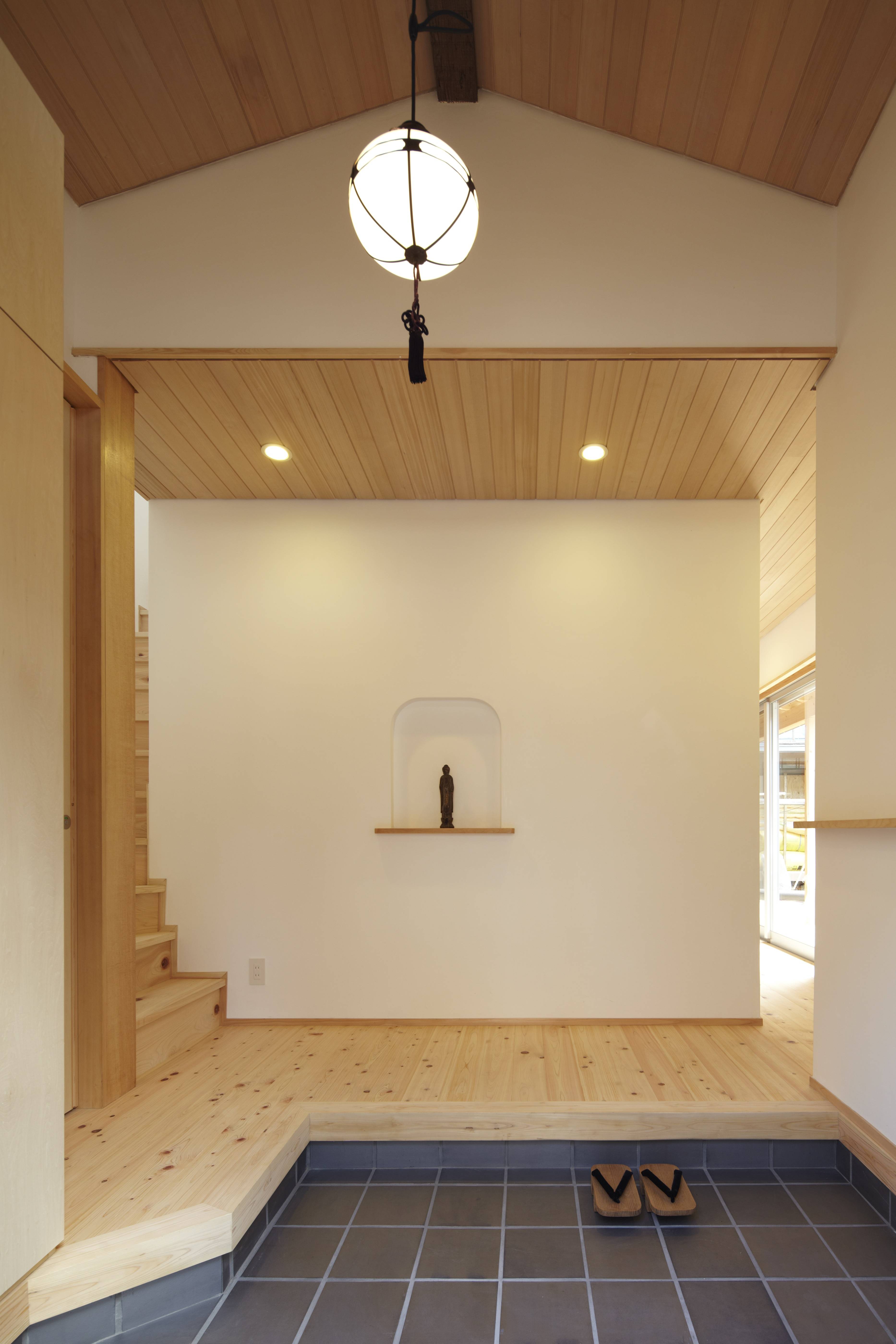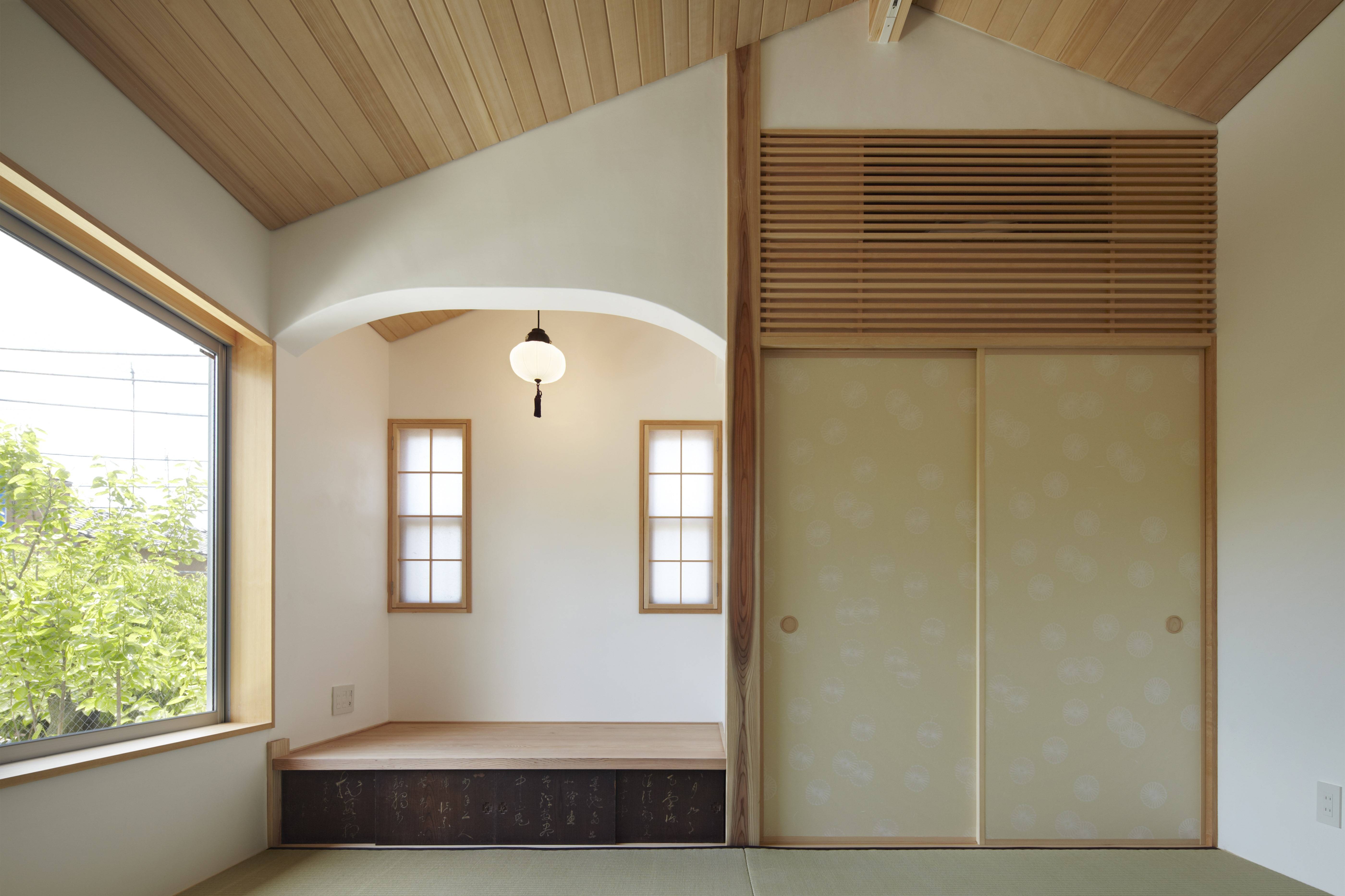 母屋については,以前ここに建っていた建物の玄関を移築しました.準防火地域なので,延焼の恐れのある軒裏等は防火仕様にしなければなりませんが,面戸板や化粧垂木を用いて防火規定を満たす工夫をし,意匠上,建物の外観を損ねないような操作を施しました.