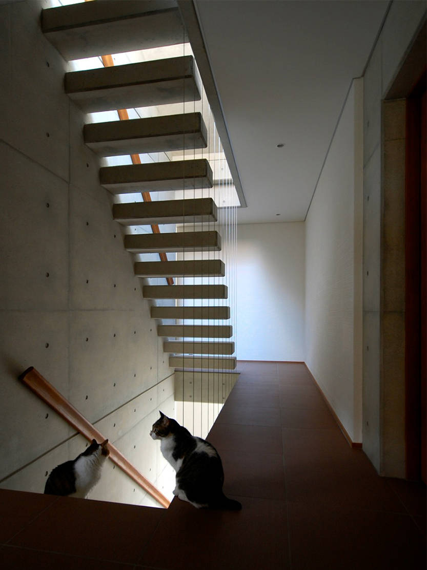 浴室・トイレ・収納以外は、仕切りつつ繋がるワンルーム空間。ネコや人が 何処で何をしているか、常に気配を感じる。