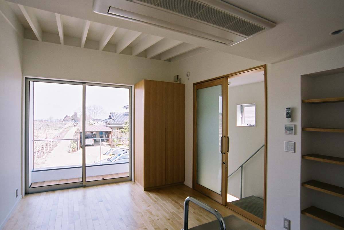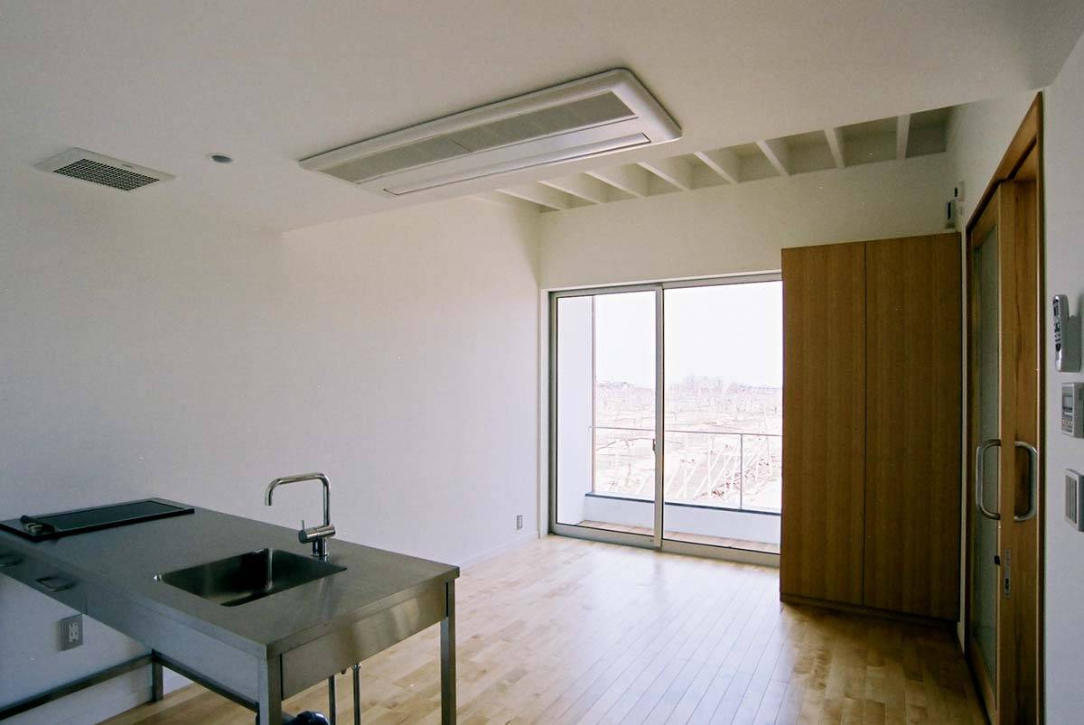 金沢市郊外のゲストハウス。既存のアトリエに増築し、1階はガレージ、2階はゲストハウス。