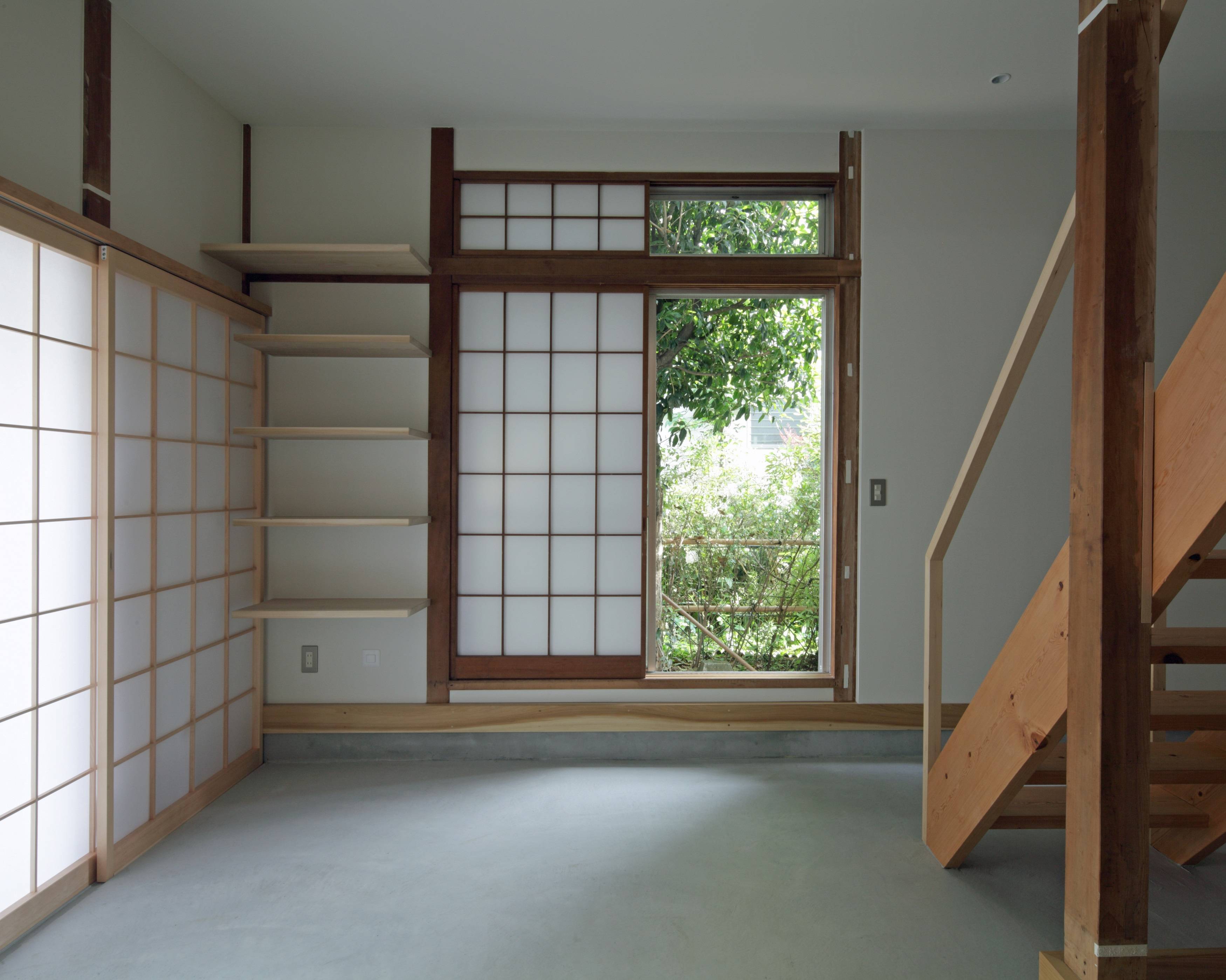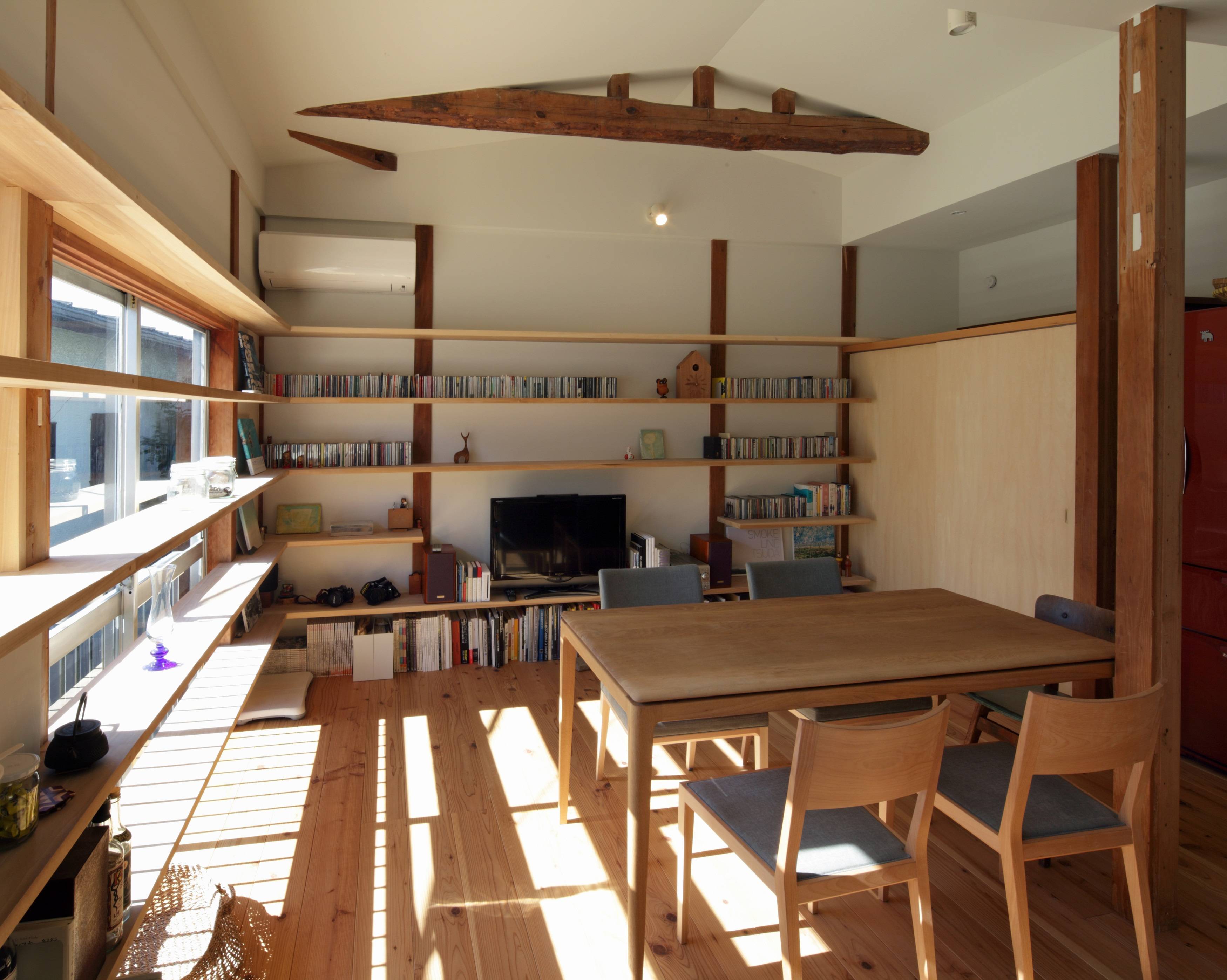 アパートとして利用されていた建物の細かな間仕切りを取って一室空間とし、耐震壁をバランスよく配置し直し断熱材を入れ替えて、夫婦二人と猫三匹のための住宅にリフォームしました。