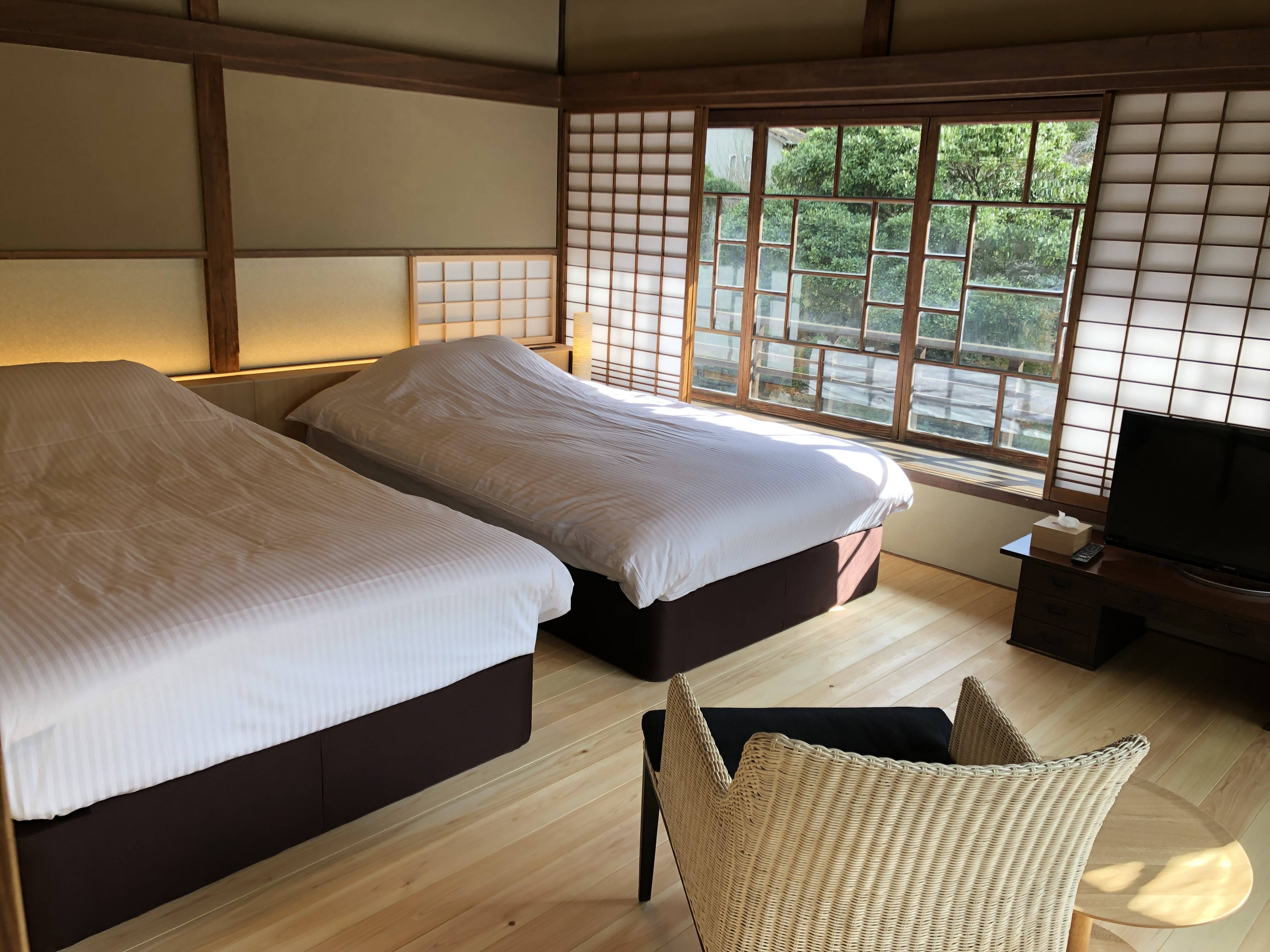 鎌倉古今は、安政2年(168年前築)の農家をレストランに、昭和の数寄屋を宿泊棟に再生しました。