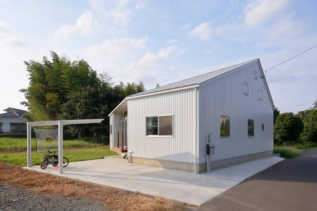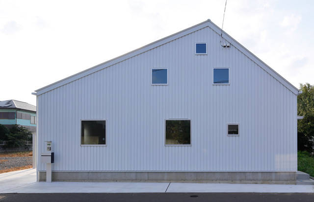 道路側からは家型の壁がどーんと建っているかのように見え、家の中の様子はわかりません。