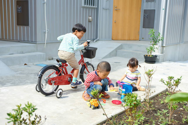 KONKO1の近くに完成したKONKO2・3は、 子供達が安心して遊べる共有の中庭空間がポイントです。 子育てテラスハウスのコンセプトなどはKONKO1の紹介をご覧下さい。